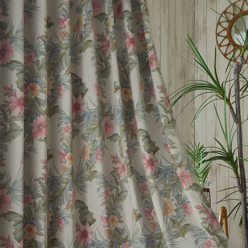 ハワイの風を感じる、1級遮光ボタニカル柄カーテン【撮影コーディネート】タッセル:<トリコテ>