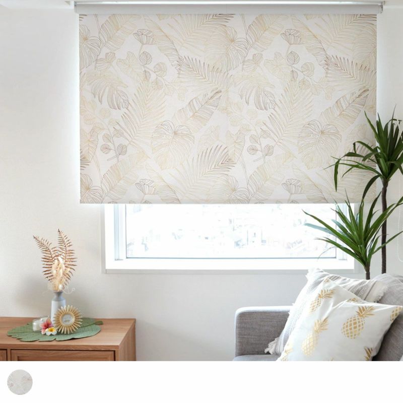 ハワイアンデザインはカラフルな物が多い中、白とゴールドだけでハワイを表現したこちらの当店オリジナルデザインは、カーテンと同生地で作れるロールスクリーンです。洗練された上品で美しい、まるでハワイアンジュエリーのようなロールスクリーンで作る、「大人ハワイアン」な空間にしてみるのはいかがでしょうか?