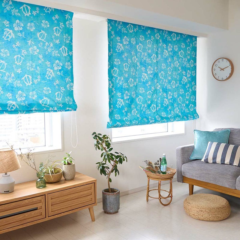ハワイでは「幸運を運んでくれる海の守り神」と言われているホヌ。そんなロマンティックなホヌ柄のシェードカーテンで、幸せを呼び込みましょう♪ -