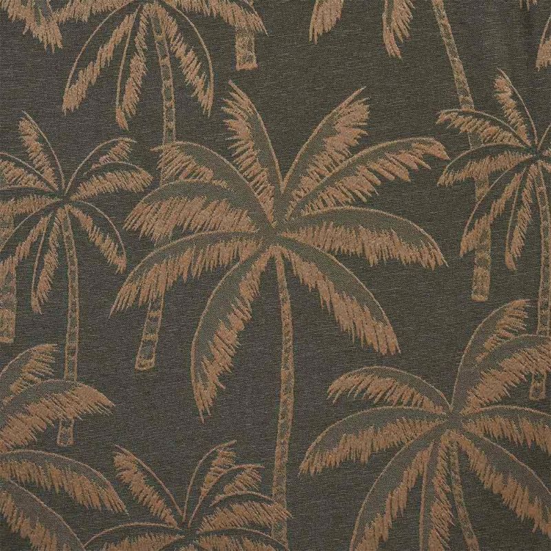 ジャガード織で表現されたヤシの木のファブリックは、思わず撫でたくなるような、ふわりとした起毛感。洗練された印象ながらも、やさしさとあたたかさを与えてくれます。ベース生地には、よく見るとヤシの木のカラーが織り込まれ、単色では表現出来ない深みのある表情を楽しめます。さらにアースカラーのやさしい色合いが、ハワイアンインテリアらしい落ち着きのある印象に仕上げます。細部にまでこだわった1枚を窓辺に。