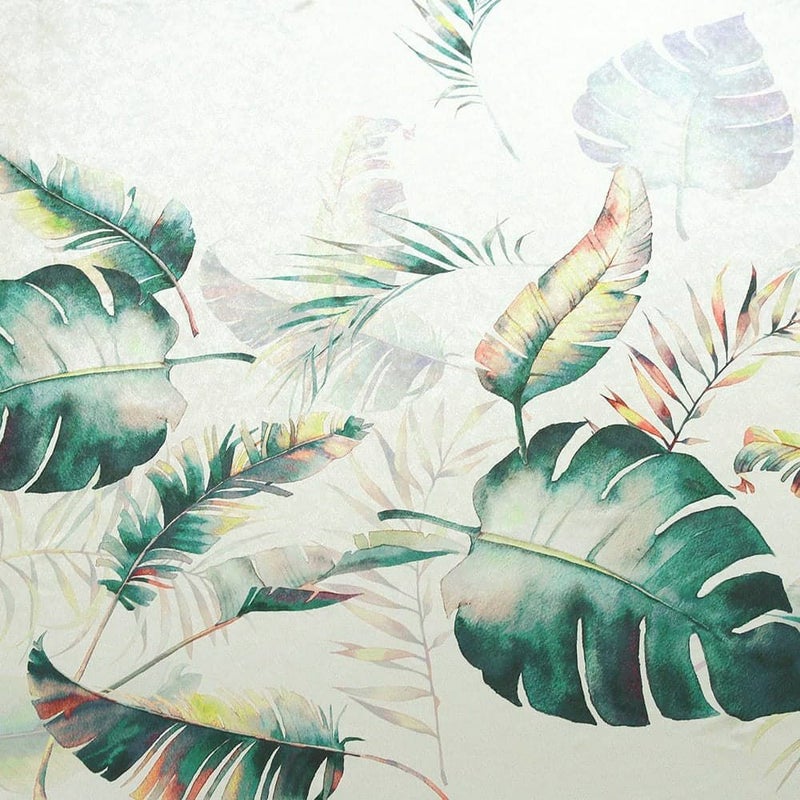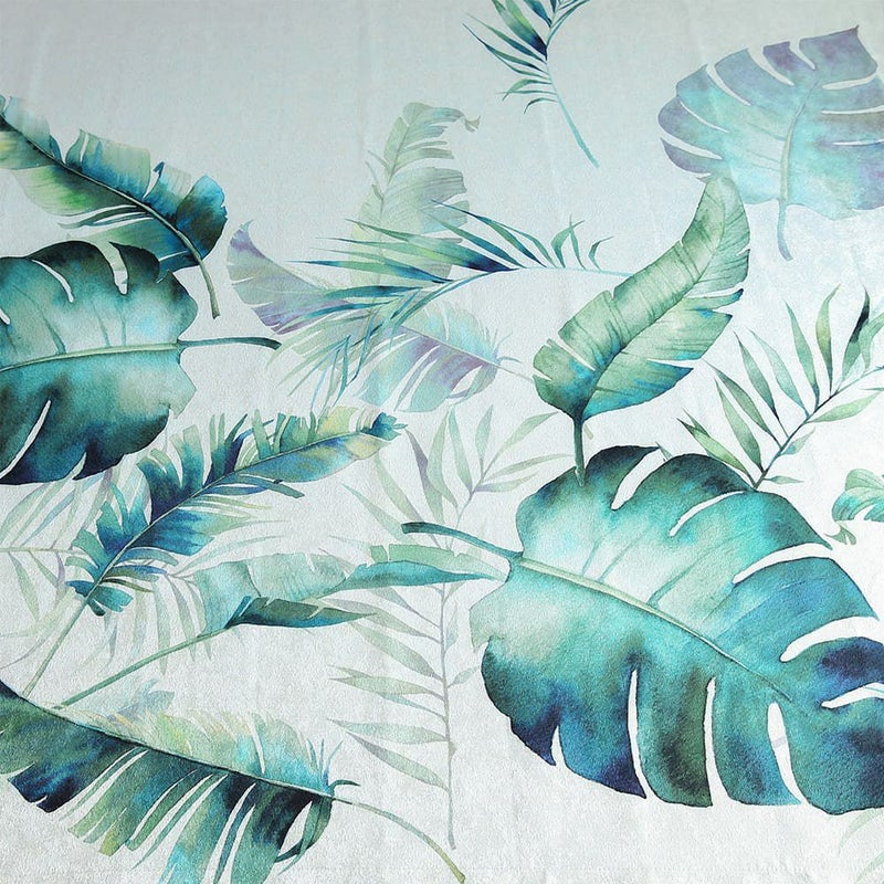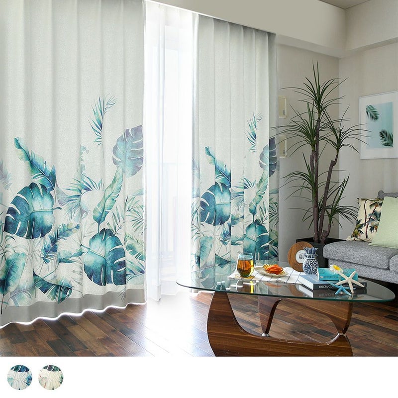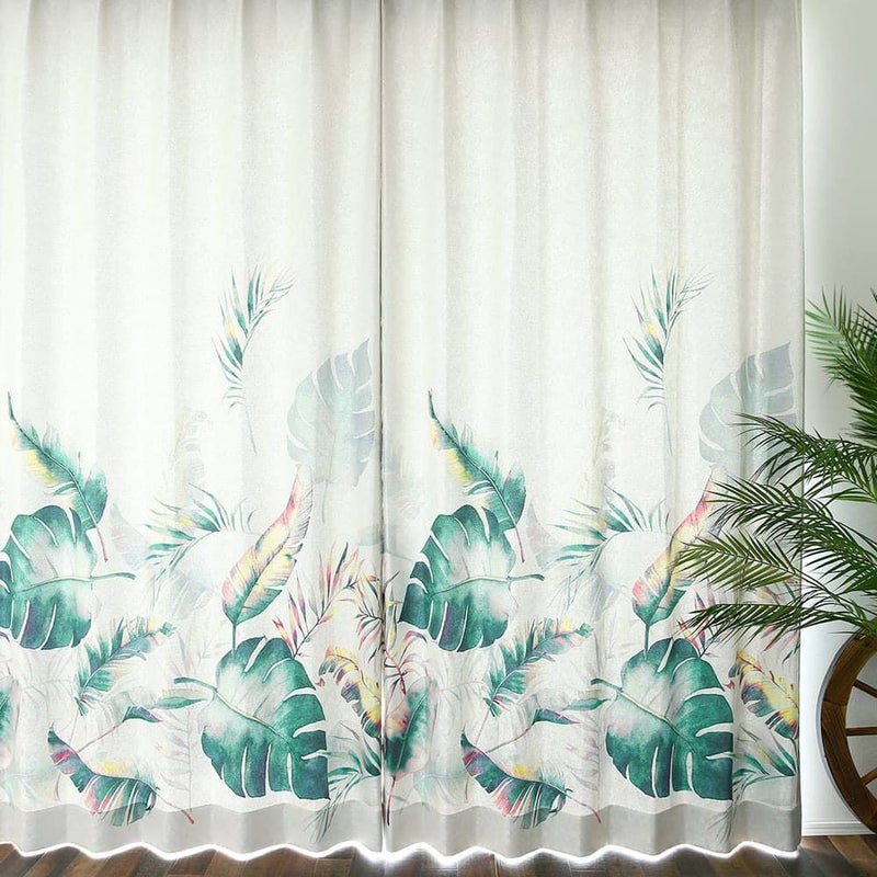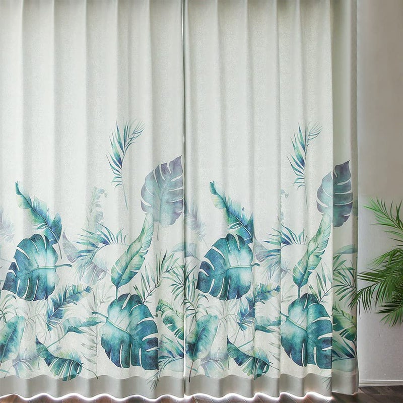 水彩画のようなタッチで描かれた大胆な亜熱帯リーフ。まるでアートのような美しさでお部屋を優しく包み込み、日々の暮らしに爽やかさと穏やかな時の流れをプラスしてくれるカーテンです。 -