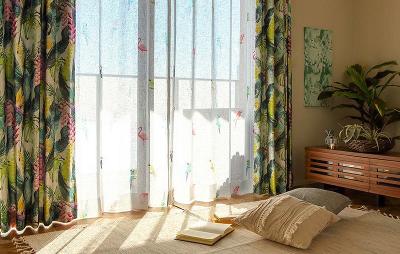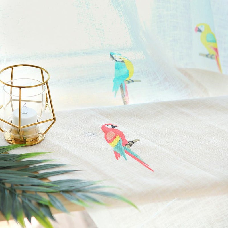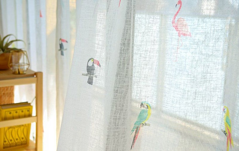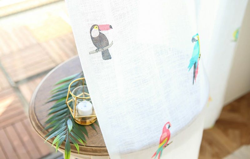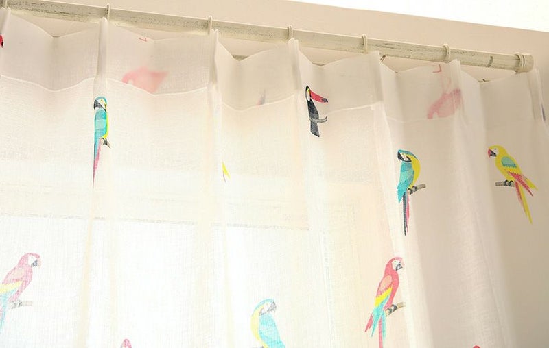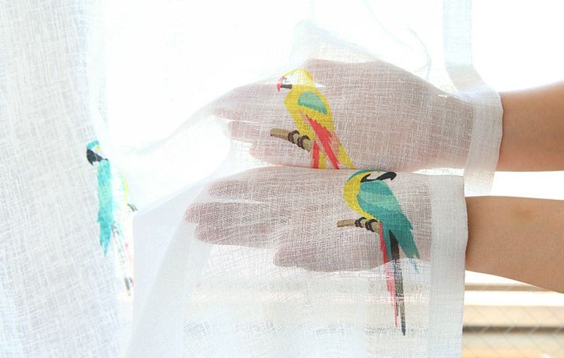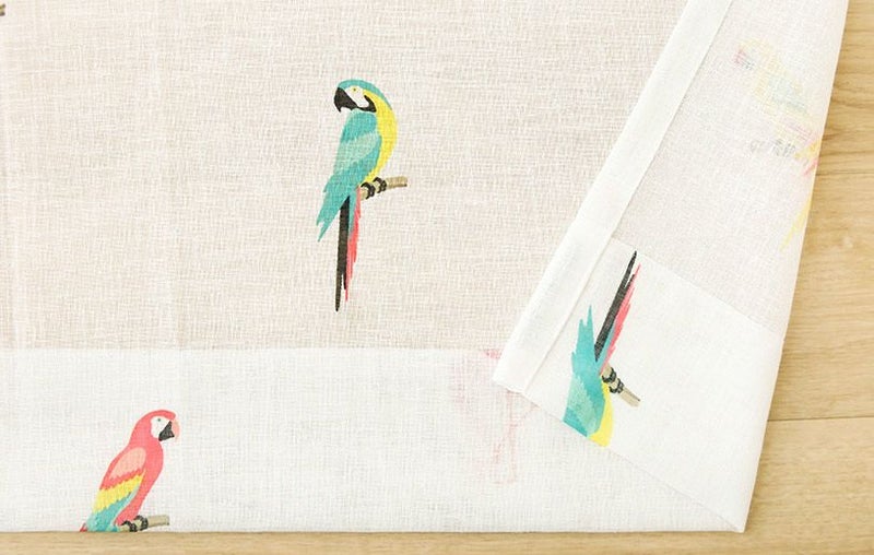 ご家庭で洗濯可能なこちらのレースカーテンは、麻風の生地にプリントされています。