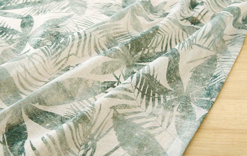 先染めでシャリ感のあるカラーボイルに、リーフ柄をプリントしました。