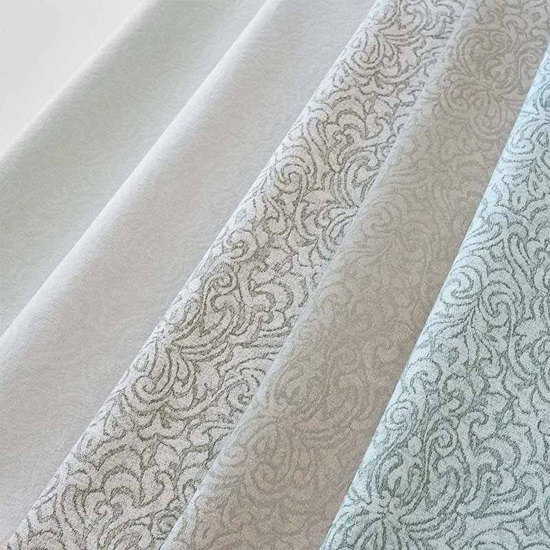 大人の品格を装う、インテリアに人気の5色をラインナップ。ホワイト、アイボリー、ベージュの3色は、柄感を抑えた無地ライクなカラーリング。グレージュ、グリーンの2色は、柄感が際立つよう織り上げられました。どれもお部屋に取り入れやすい、魅力的なベーシックカラー。