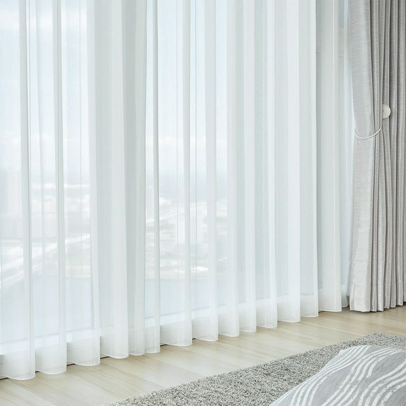 レースカーテンの美しさをさらに引き立てる形状記憶加工付き。洗濯を繰り返しても半永久的に美しいドレープが持続するため、長く愛用していただけることも嬉しいポイント。