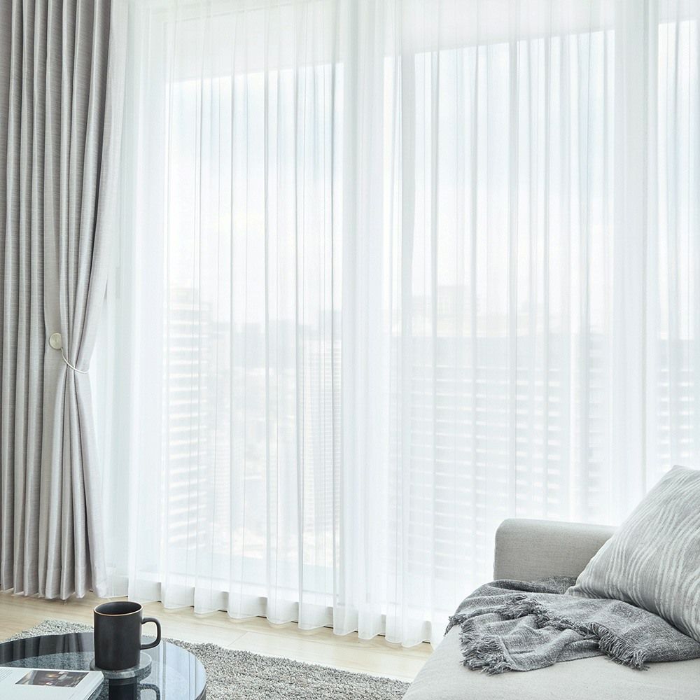 大きな窓は外からの熱気が入ってきやすいため、遮熱効果のあるレースカーテンが活躍します。強い日差しによる熱気を遮り、室内の温度上昇を抑え、快適な環境を整えます。一年を通して心地よく暮らすための、頼れる機能付き。