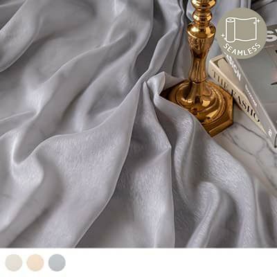 光を浴びて、美しい光沢を放つ。繊細なレースが窓の外に、ドラマチックなフィルターをかけてくれる。3mの大きな生地を存分に使い、どんなに大きな横幅の窓でも幅継ぎが入りません。ふわりと風に舞うレースカーテンの美しい姿も、シームレスなら格別。