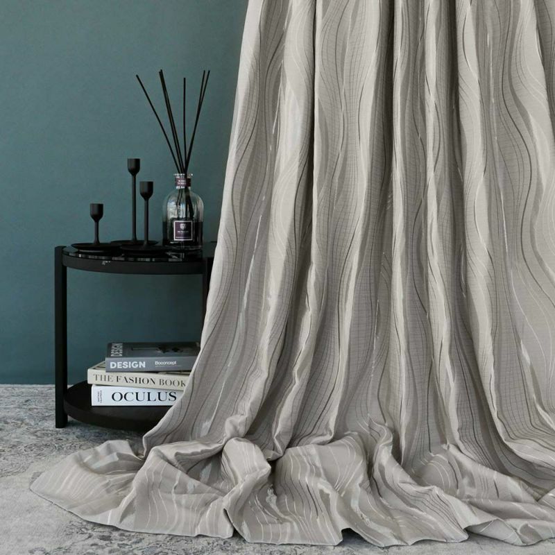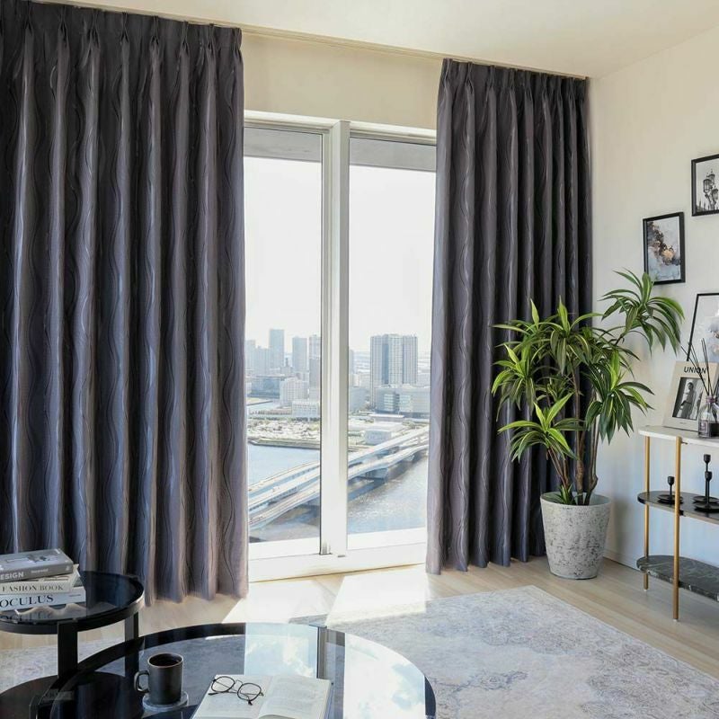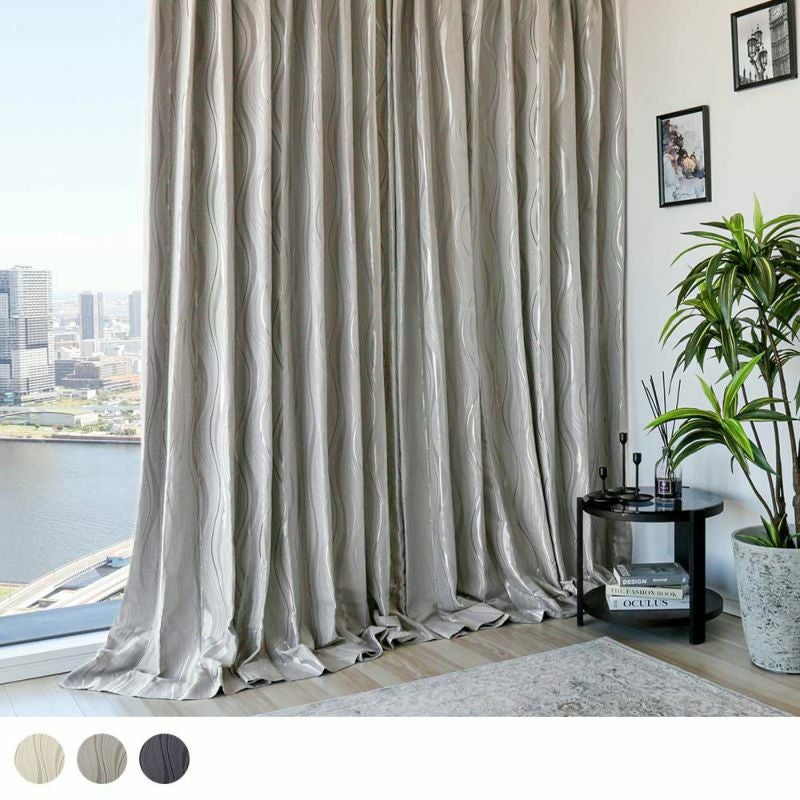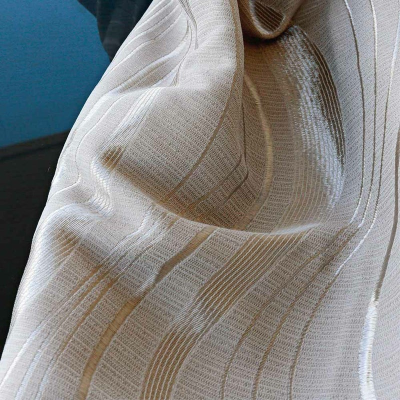 ラグジュアリーな空間を楽しめる大人気のオーダーカーテンを。マットなグラウンドに流れる水のような、緩やかで穏やかな曲線をデザインしたジャガードカーテン。美しい光沢を放つ糸はまるで、日差しを受けて輝く水面のような美しさ。金属的なカラーリングは硬貨なイメージをもたらし、曲線との調和を楽しめる都会的なテキスタイルに。
