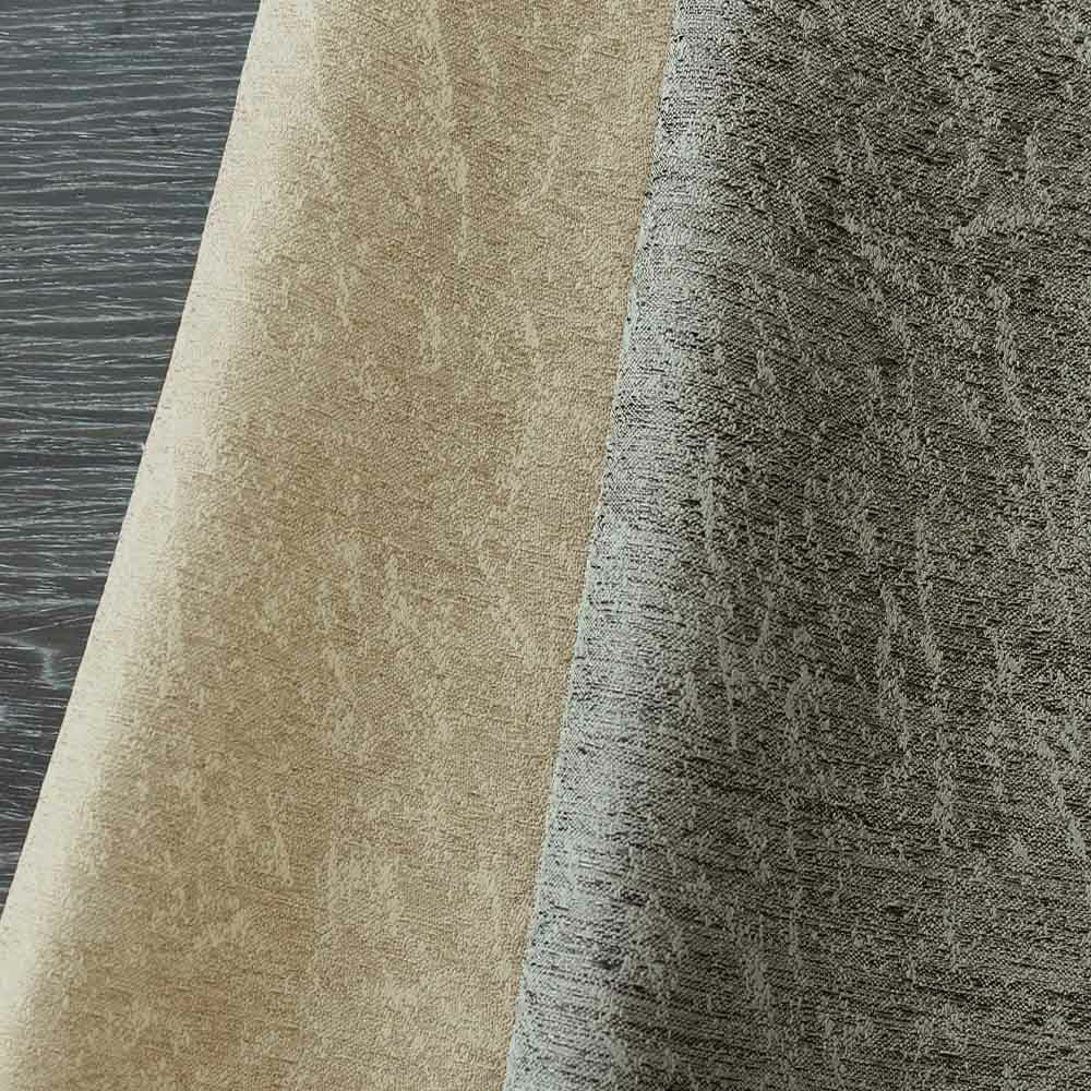 光の加減によってほんのり表情を変える絶妙なベージュと、モダンなインテリアを叶えるシックなグレー。同系色の糸がいくつも混ざり合い、ジャガード織り特有の深みが高級感を惹きだす。大人の雰囲気を醸し出す、魅力的なカラーリング。