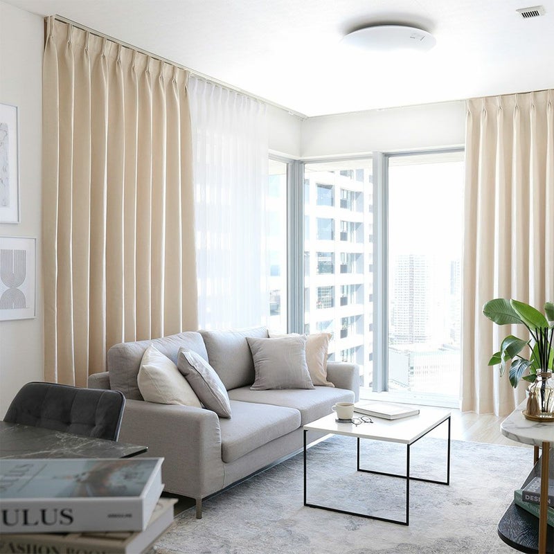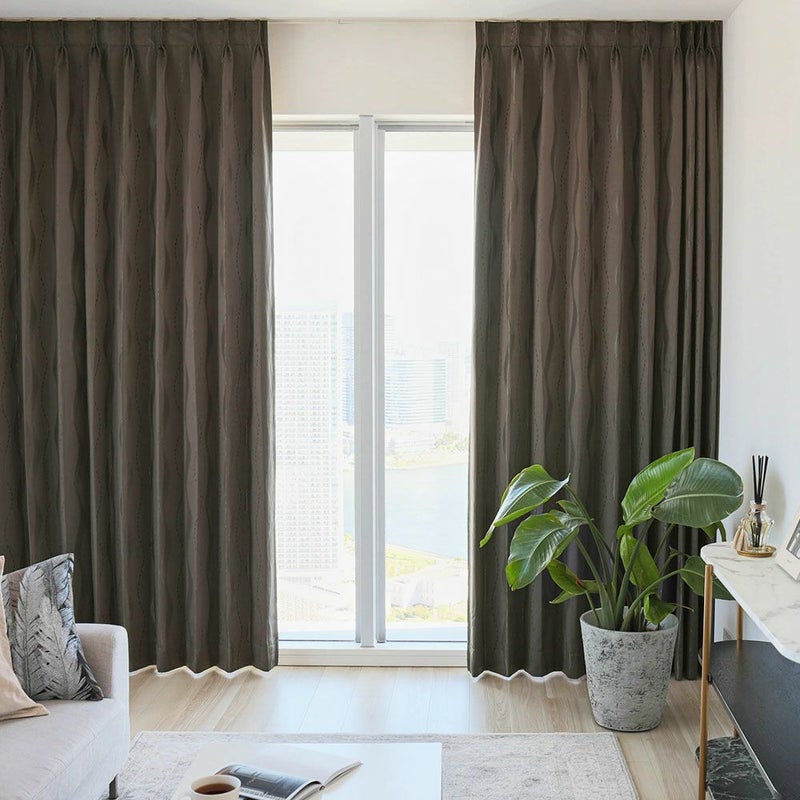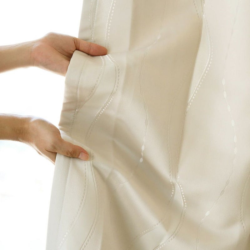 ライトウェーブ加工は、熱の力を加えてカーテンのウェーブを整える技法。ライトウェーブ加工が施されていると、ドレープの美しさを届いた時から楽しむことができます。カーテンを開けた時は、たたまれたヒダがきれいにまとまり、すっきりと整った印象に。 窓辺のビジュアルを格上げしてくれる、ライトウェーブ加工を標準装備でお届けします。