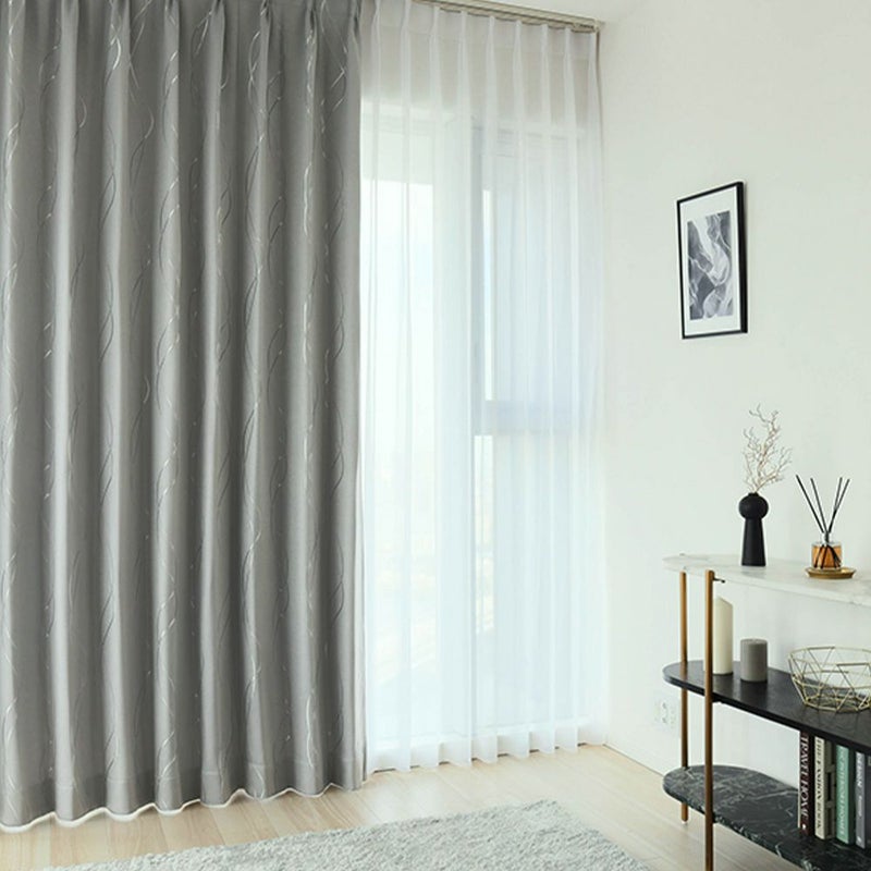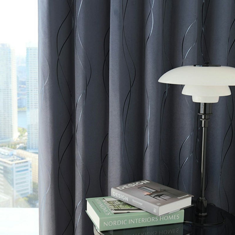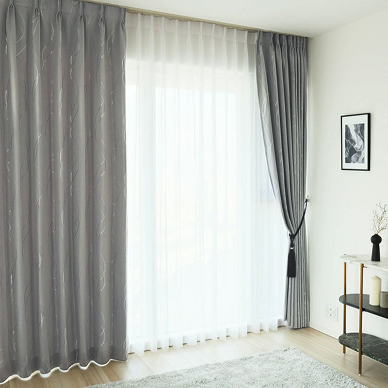 縦に流れるウェーブデザインが、空間を高く広く見せてくれる、優雅なデザインのジャガードカーテン。裏地が無くても遮光性を備えた「ナーリス」なら、軽やかに窓辺を飾ります。いつものリビングを、ラグジュアリーな寛ぎの空間に。