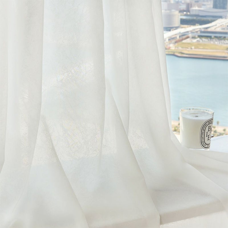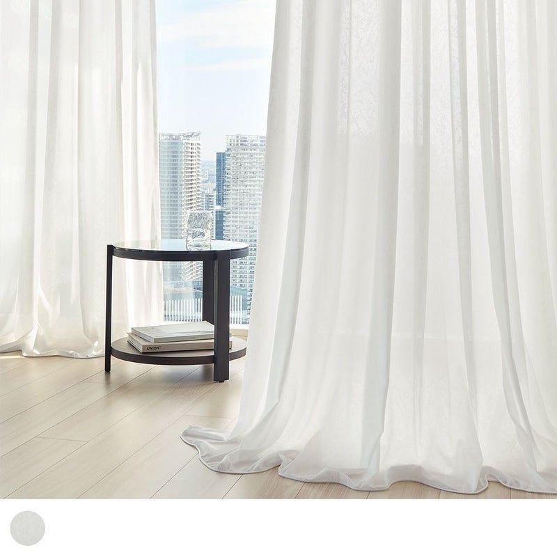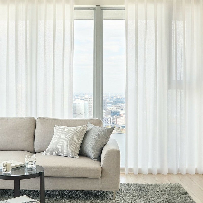 軽やかでありながら、とろみとハリも感じるレースカーテン。だからこそ、この落ち感のあるシルエットが叶います。ホテルライクらしい端正さとやわらかさを同時に感じられる、特別感のあるレースカーテンです。