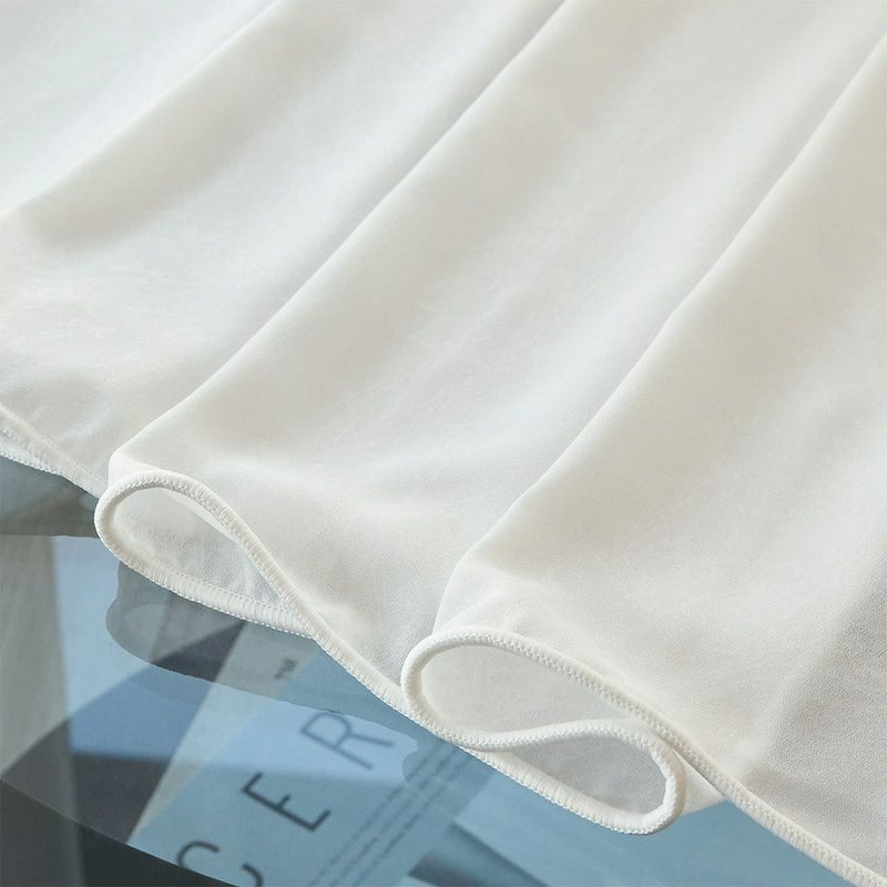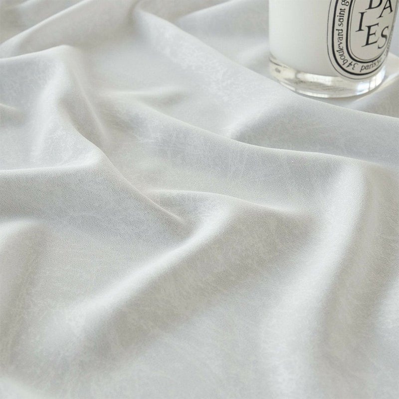 触れた瞬間、しっとりと指先になじむとろみのある質感。やわらかな落ち感が、ホテルのリネンのような静かな上質さを演出する。