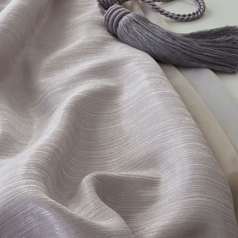 繊細に織り込まれた横糸が、光の加減で豊かな表情を生み出す。無地でありながら奥行きを感じさせるテクスチャーが、空間に静かな華やぎを添えます。ホテルのような上質なインテリアを求める大人の空間に、品格ある陰影を。