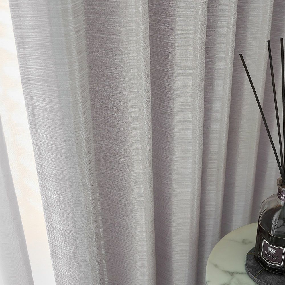 間接照明に照らされて浮かび上がる艶感、夜景に溶け込む柔らかな陰影。窓辺の傍でグラスを傾けるそのひとときに、このドレープカーテンが静かに寄り添う。昼とは違う表情を見せる、神秘的な夜のムードを楽しんで。