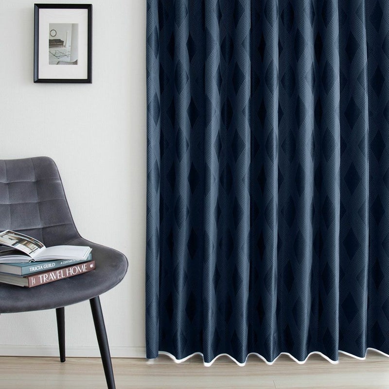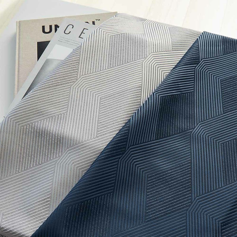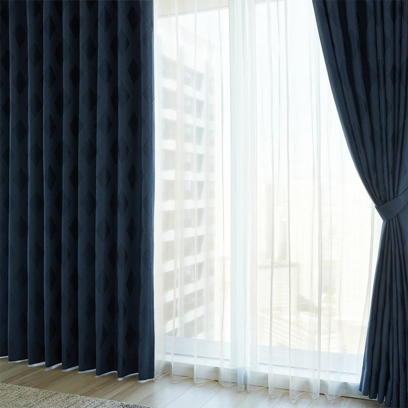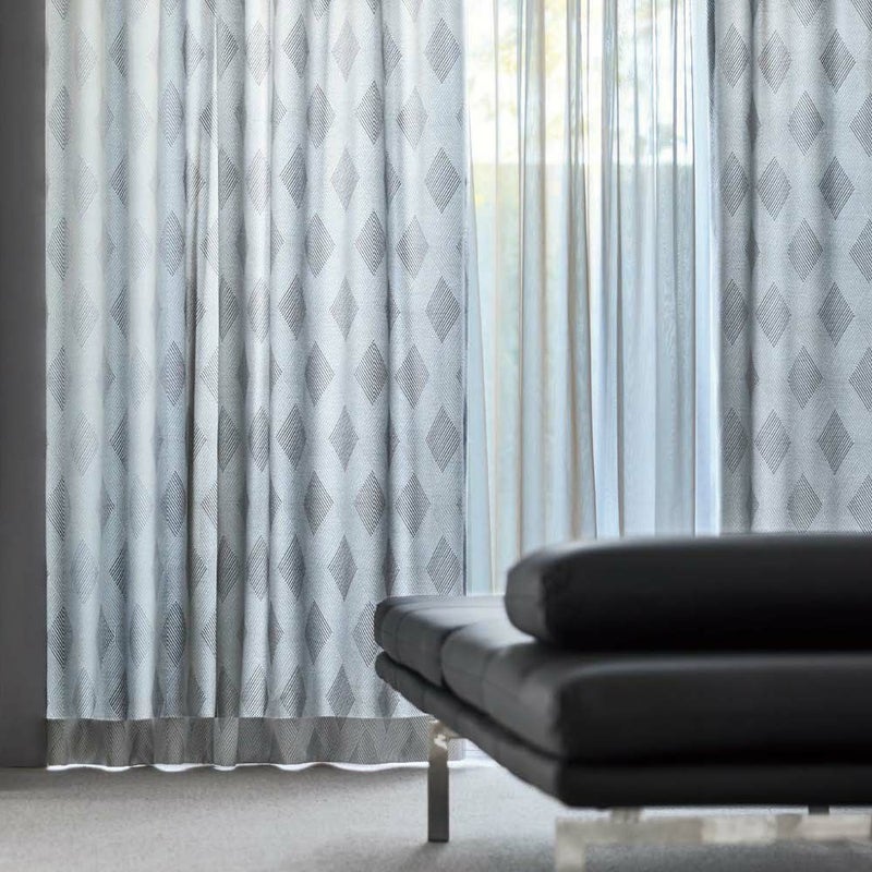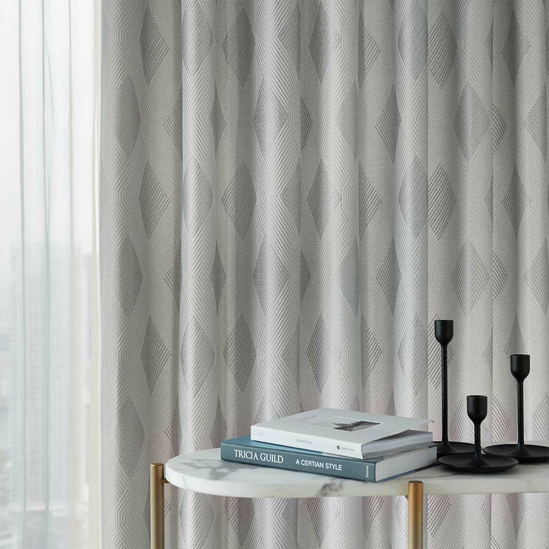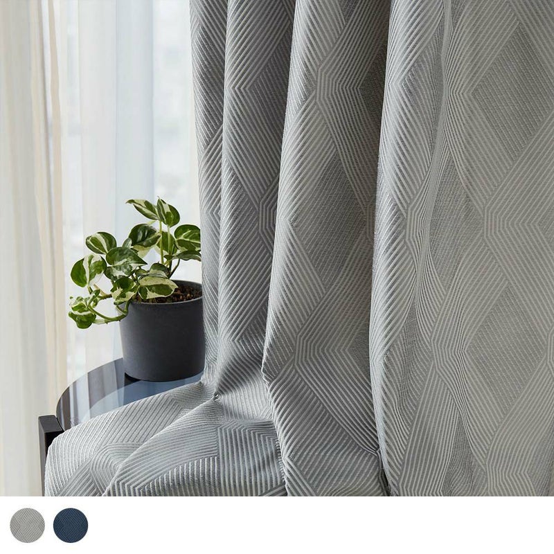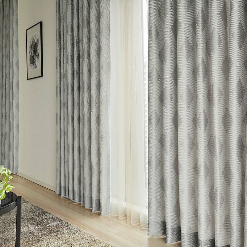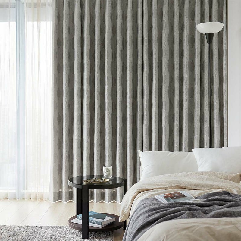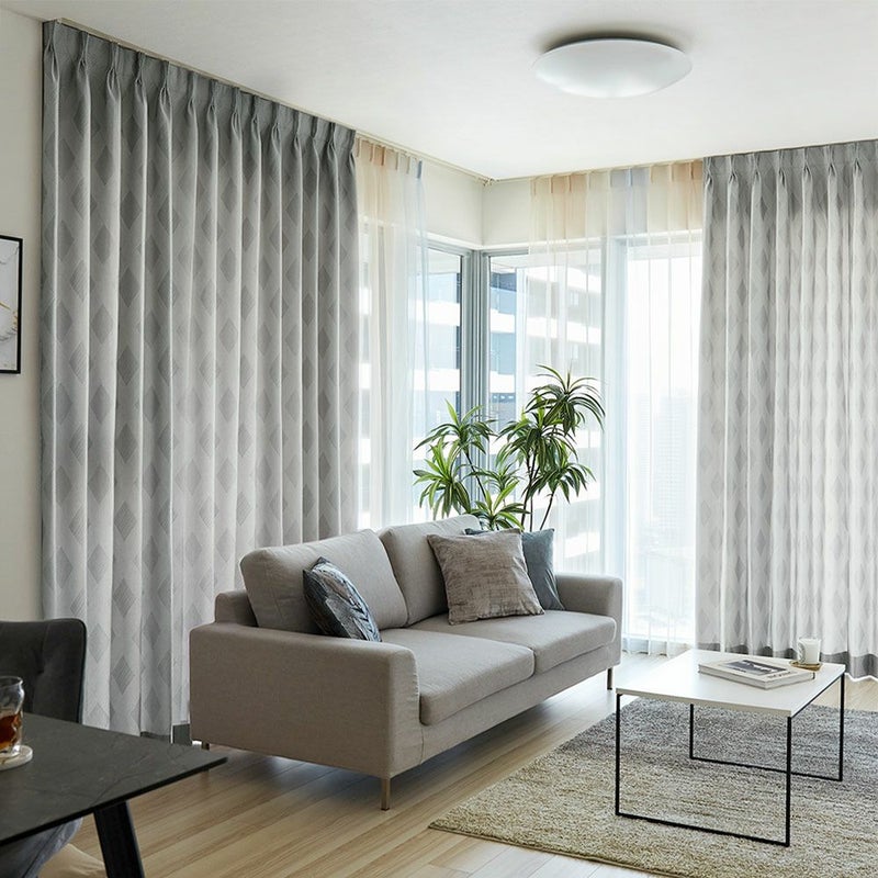 上質な生地感と、幾何パターンの融合がスタイリッシュな窓辺へと導くジャガードカーテン。都会的で凛とした、大人な空間に相性のいい一枚です。