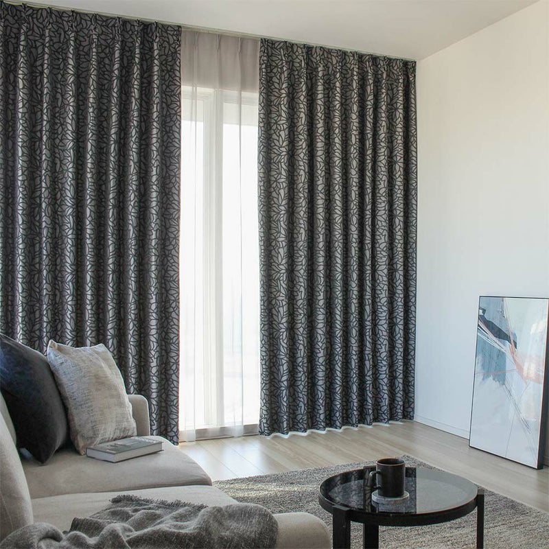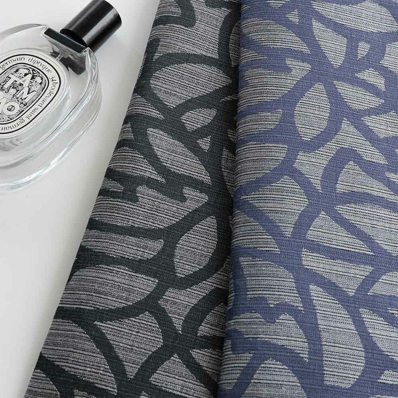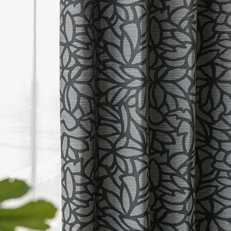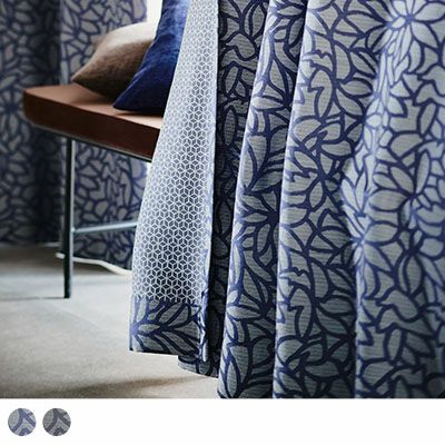ベースは無地かと思わせて、実は様々な糸調子で織られているオーダーカーテンならではの、こだわりの詰まった生地。ただデザインを乗せただけではない深みが表現されている。