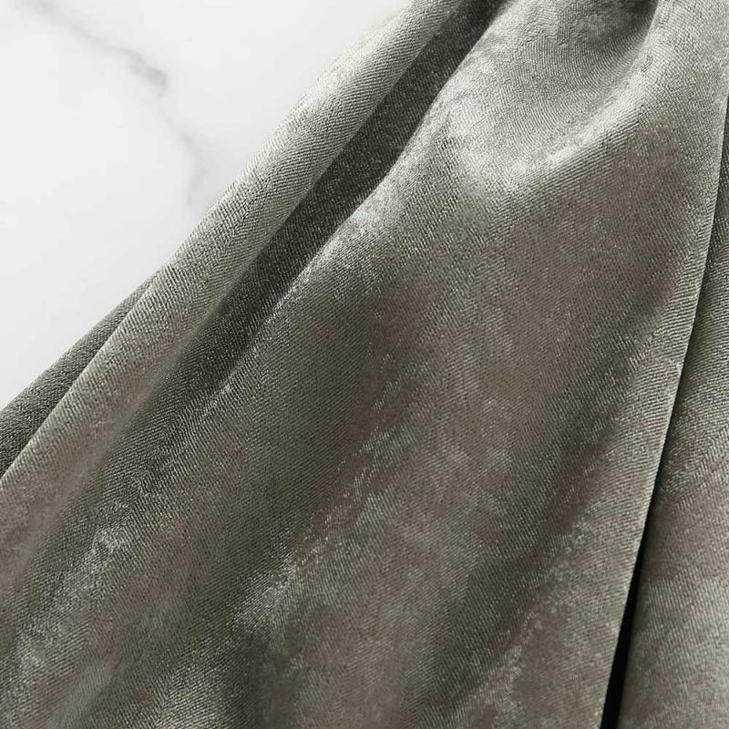 カーテンに陽が当たると、ピーチスキンの表面が複雑な表情を魅せ、ランダムに光沢を放ちます。さらに、光によってヒダの陰影が色濃く現れ、神秘的で高級感の漂う雰囲気に。