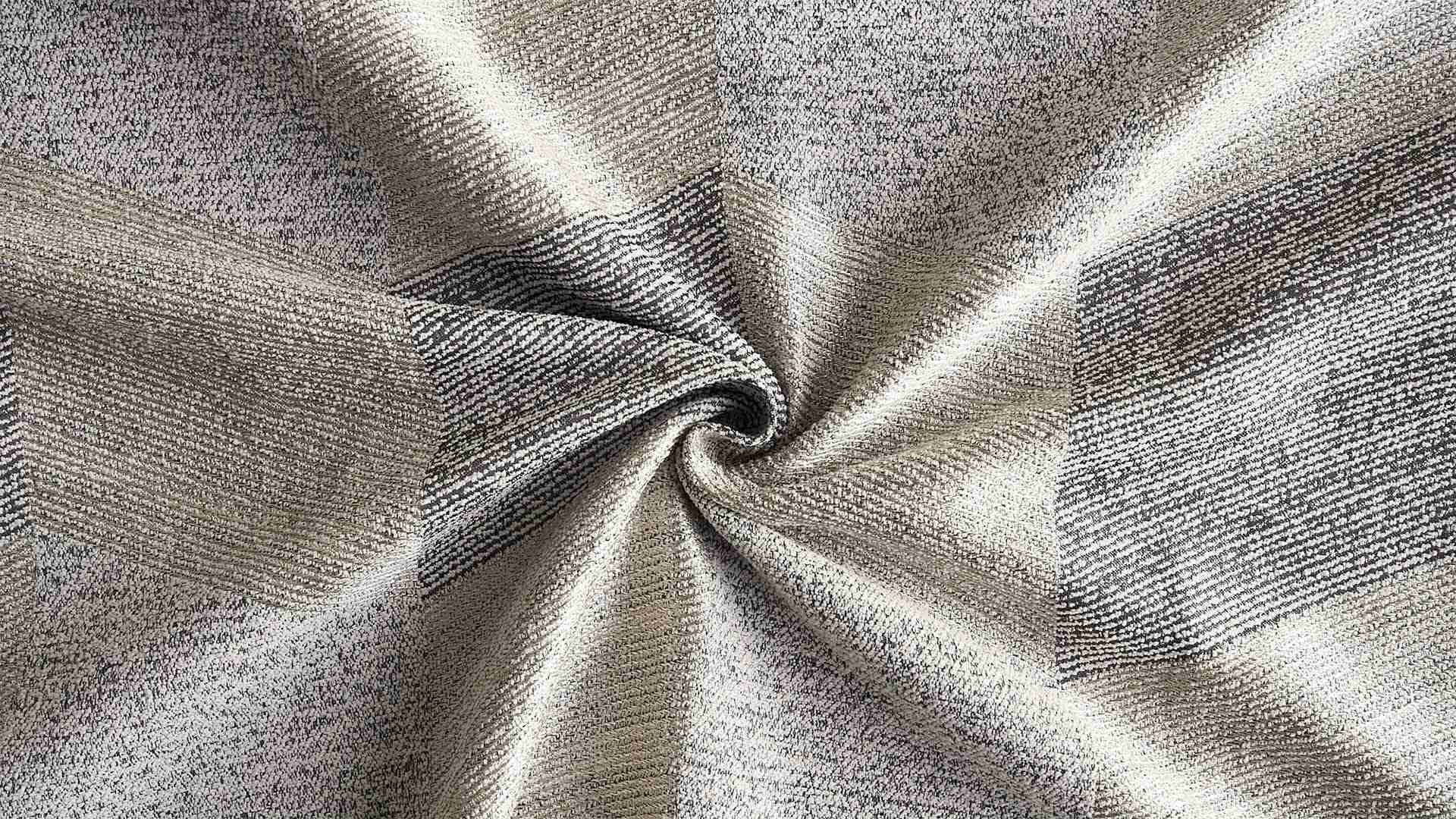 光沢糸が描く艶、モール糸が生み出す凹凸、異なる表情をもつ糸が重なり合う織りの層。ドビー織りによって立体的に紡がれた、奥行きのあるテキスタイル。