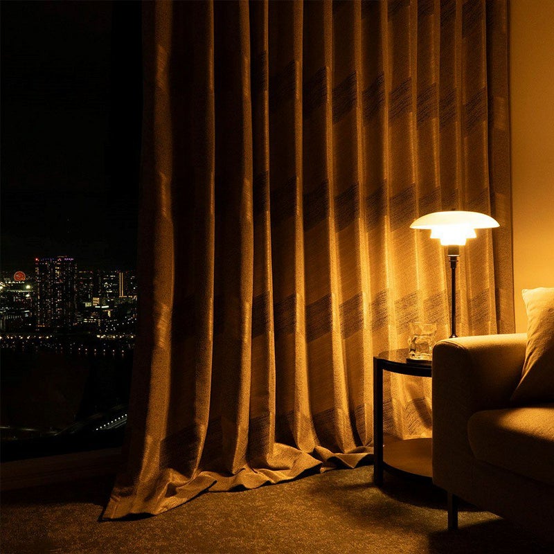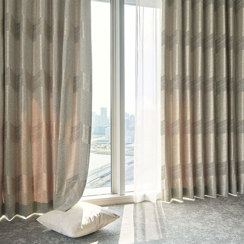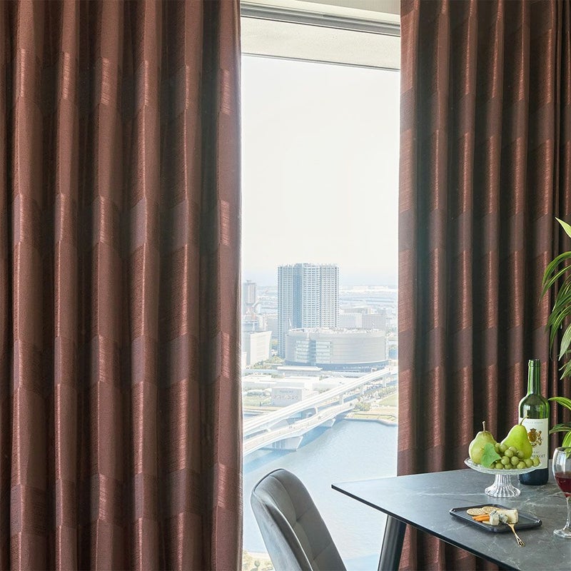 光を遮るのではなく、外の気配をやさしく取り込む非遮光カーテンは、移ろう時間とともに表情を変えていく一枚。ワインを傾ける午後も、ひとり静かに過ごすひとときも、深まっていく大人のムードを窓辺に。 -