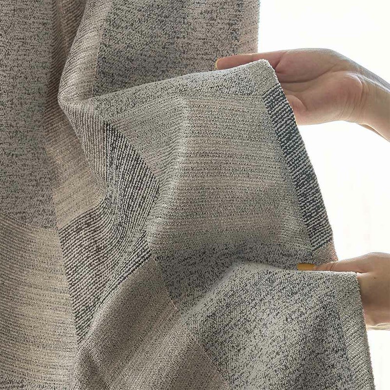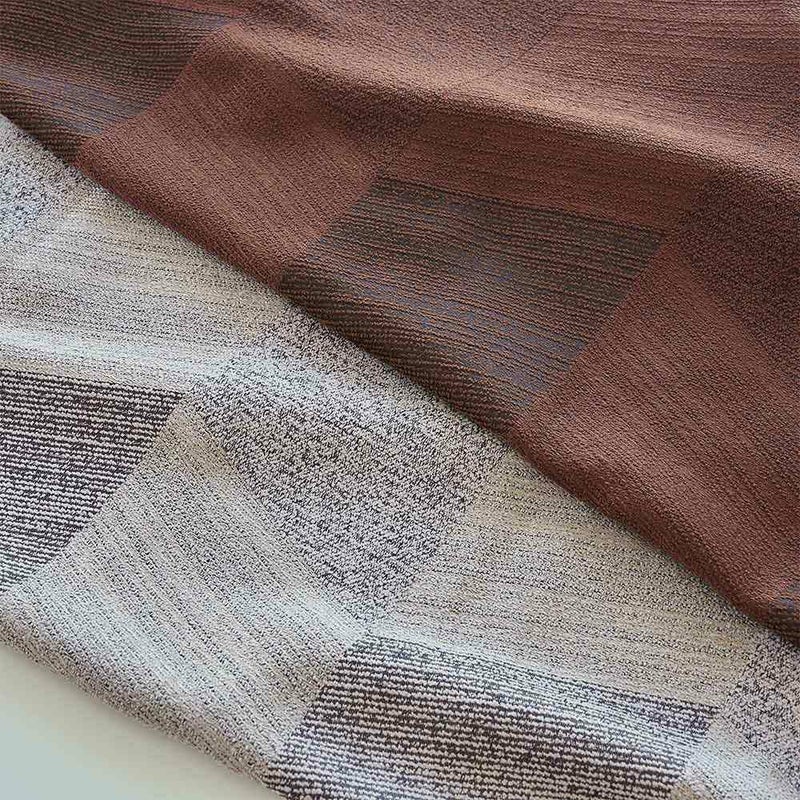 ヘリンボーンを格子柄に再構築した、直線的で端正なデザイン。規則正しく連なるラインが、空間に心地よいリズムと、凛とした秩序をもたらします。無機質になりすぎず、どこかあたたかみを宿すのは、織りによって生まれる陰影と、素材の表情があるからこそ。直線の美しさと、ファブリックならではのやわらかさ。そのバランスが、窓辺にちょうどいい緊張感を添える。