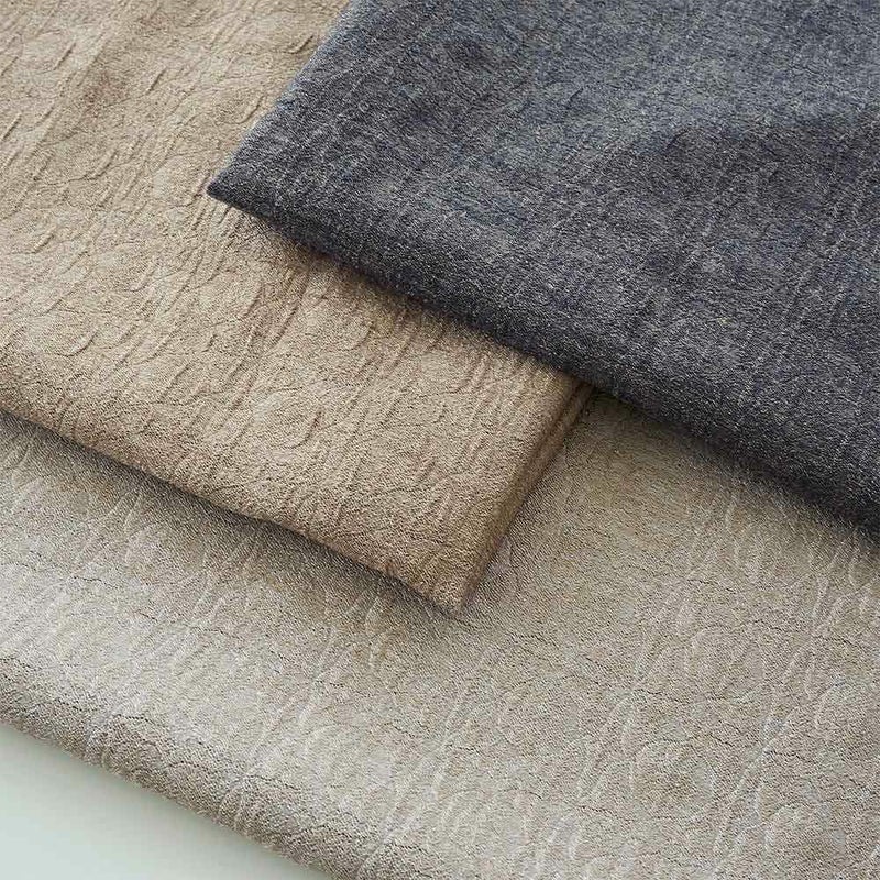 触れた瞬間に伝わる、凹凸のある豊かなさわり心地。カーテンを開け閉めするたび、指先に心地よいリズムが流れ、日常の一瞬の動作が上質な時間に変わっていく。手に馴染むテクスチャーが暮らしに余韻を残し、触感が生み出すのは穏やかな心地よさ。