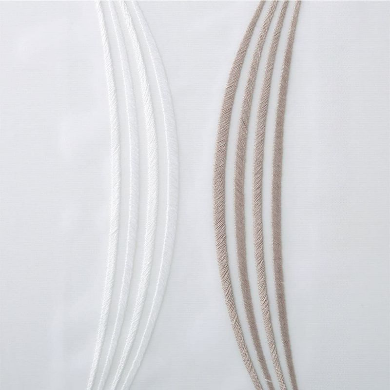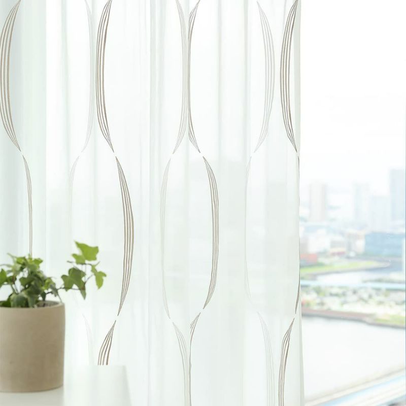 レースの生地の表面でゆったりと漂う波模様が、穏やかで落ち着いた雰囲気を感じさせてくれる。2色の曲線がデザインに奥行きを感じさせ、美しく窓辺を演出します。