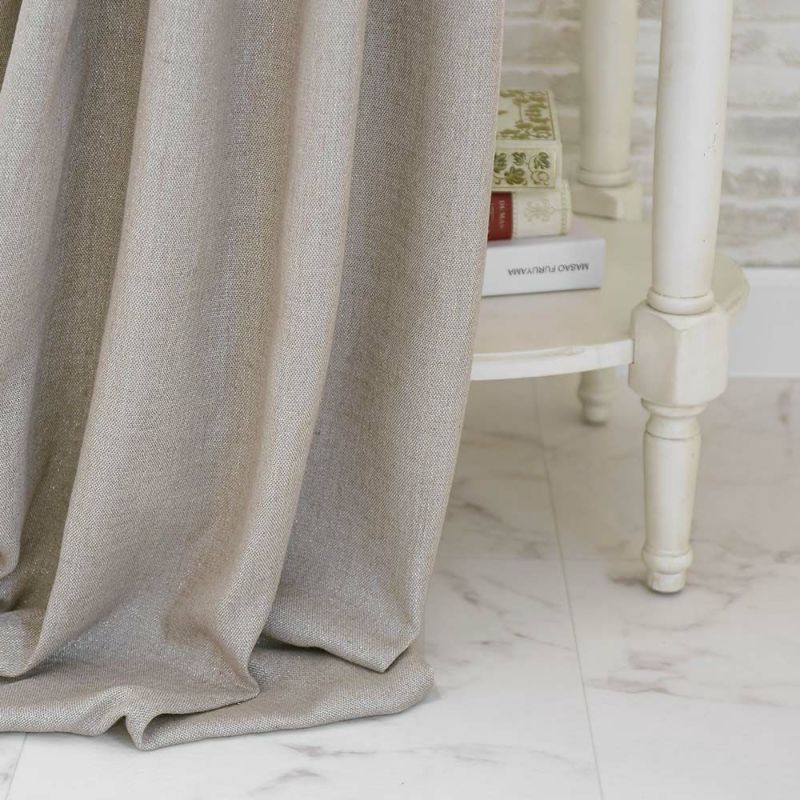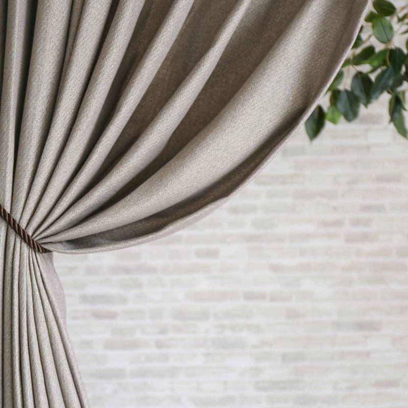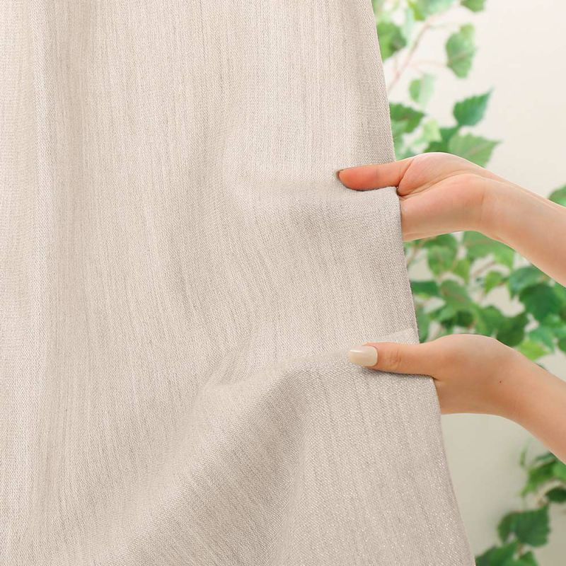 陽射しを受けて、かすかにキラリと光るラメ糸が美しい。ナチュラルな生地の中に上品な光のスパイスをプラス。ラフな中にも高級感を感じさせる、遊びゴコロあるカーテンです。