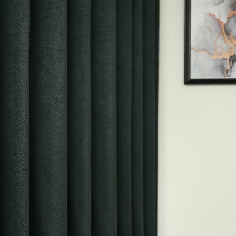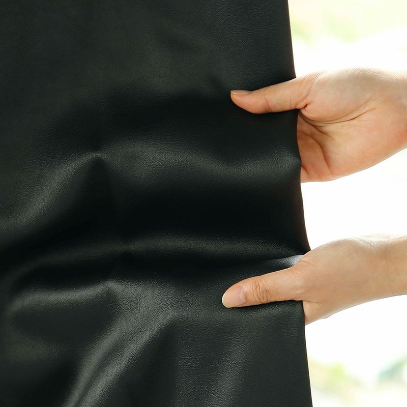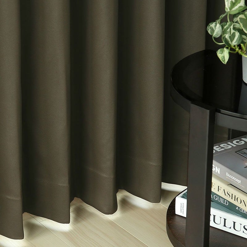 そのリアルな質感が、空間をぐっと引き締める。クールさにこだわりたい人におすすめ、都会的な空間を演出する本格的なレザー調カーテン。 -