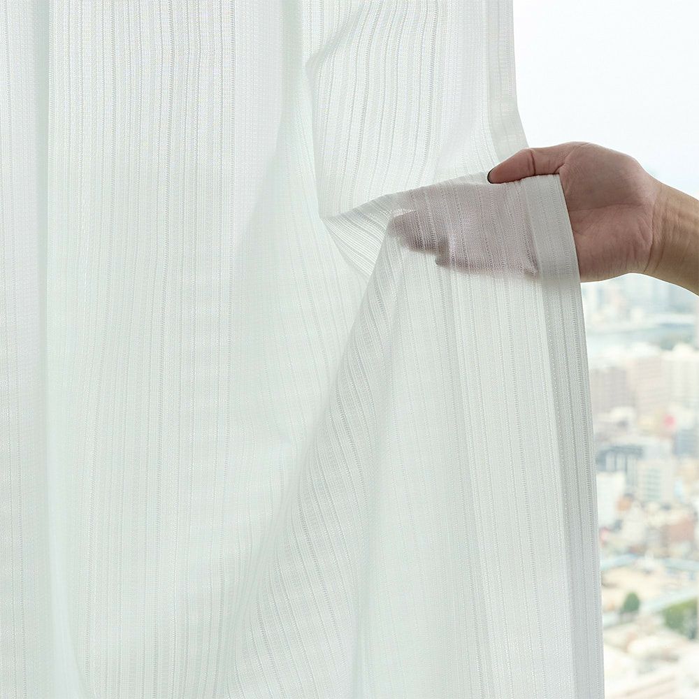 ユニークな四つの山扁平状の繊維構造で、ほぼ透け感のないプライバシーレースカーテンに仕上がっている。 屋外からは、部屋に人が居るのが分からないくらいの透け感で、どこから見られているかわからないという不安を払拭。昼夜共にレースのみで過ごせるほどの安心感を確保する。