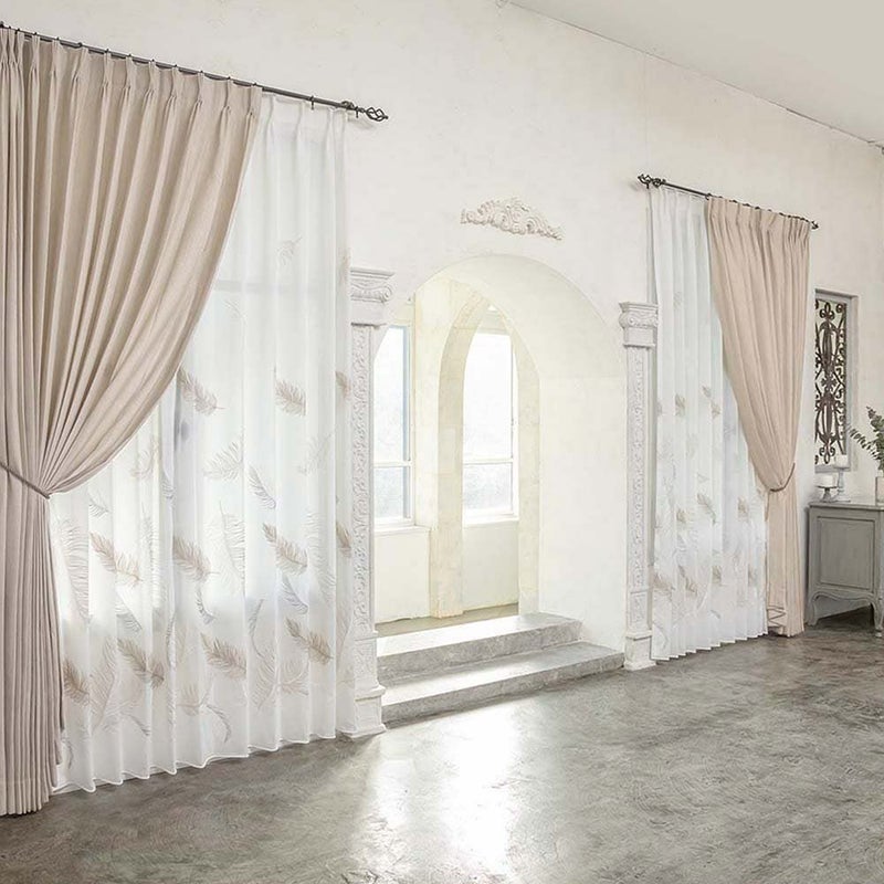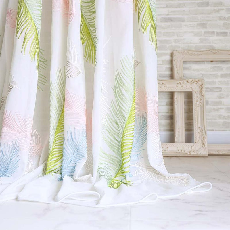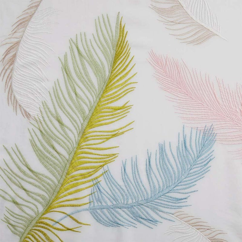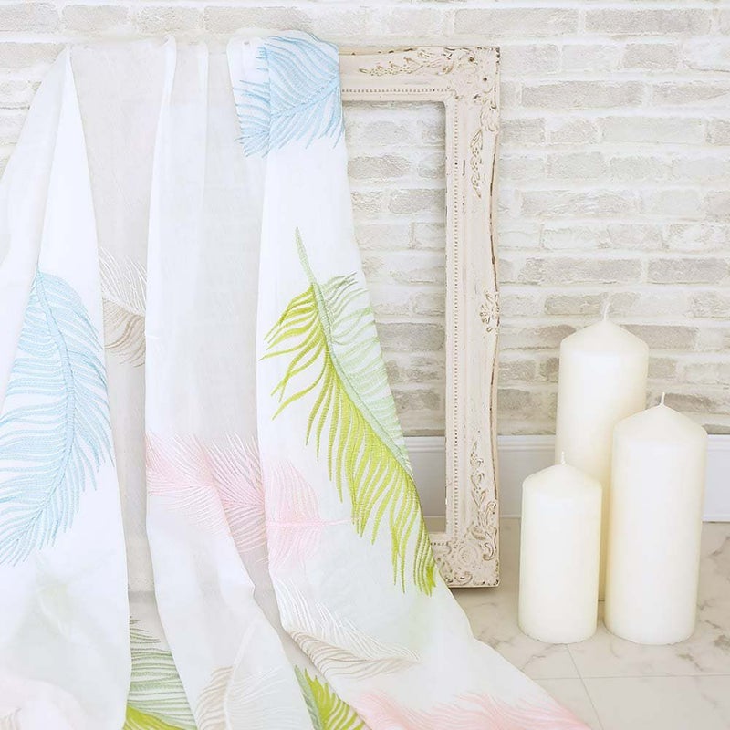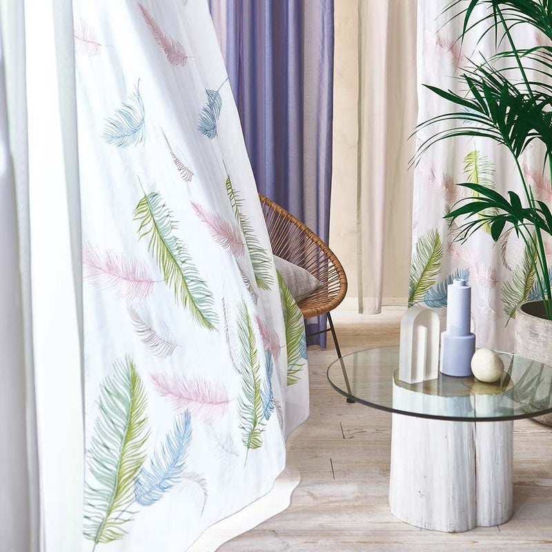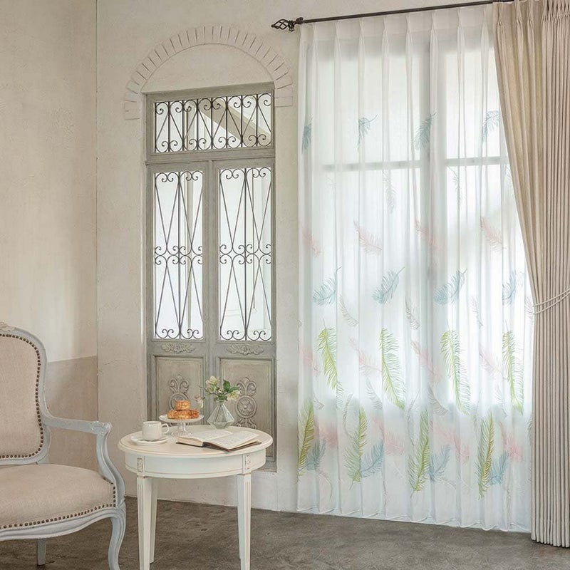 【撮影コーディネート】 ドレープカーテン <ザント ベージュ>/2倍ヒダ(3つ山)ふわり、ふわりと空から舞い落ちるカラフルな羽根。なんとも美しい光景をレースカーテンに落とし込みました。まるで楽園(パラディーゾ)のような空間をお楽しみいただける窓辺に貴方を誘います。