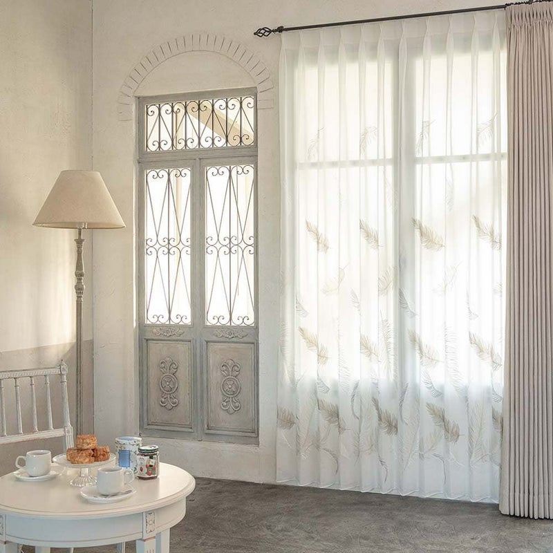 ふわりと舞い落ちる、羽根のレースカーテン