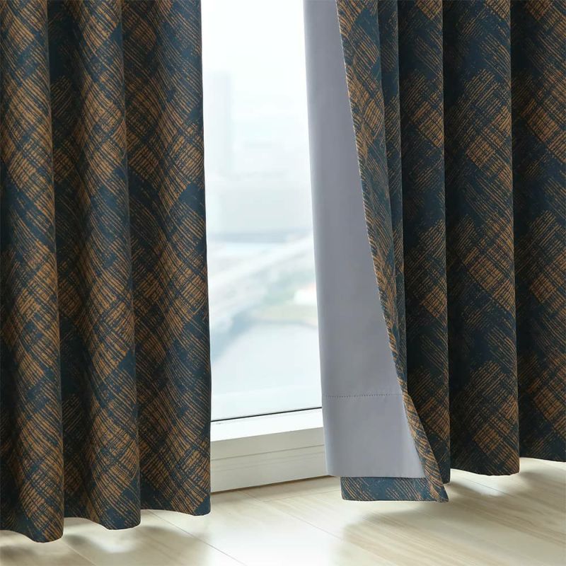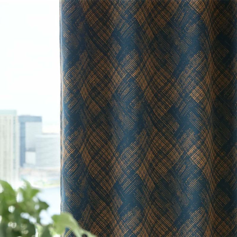 カジュアルなデザインをあえて高級なジャカードに落としこむ事で、上質さとデザイン性を兼ね備えた、新感覚のカーテンに。立体感のあるファブリックはプリントには無い高級感が漂う。