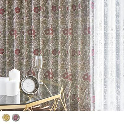 ピンクアンドローズの『ピンク』とはカーネーションの事。バラとカーネーションをデザインした、華やかなウィリアム・モリスのジャガードカーテンをお楽しみください。