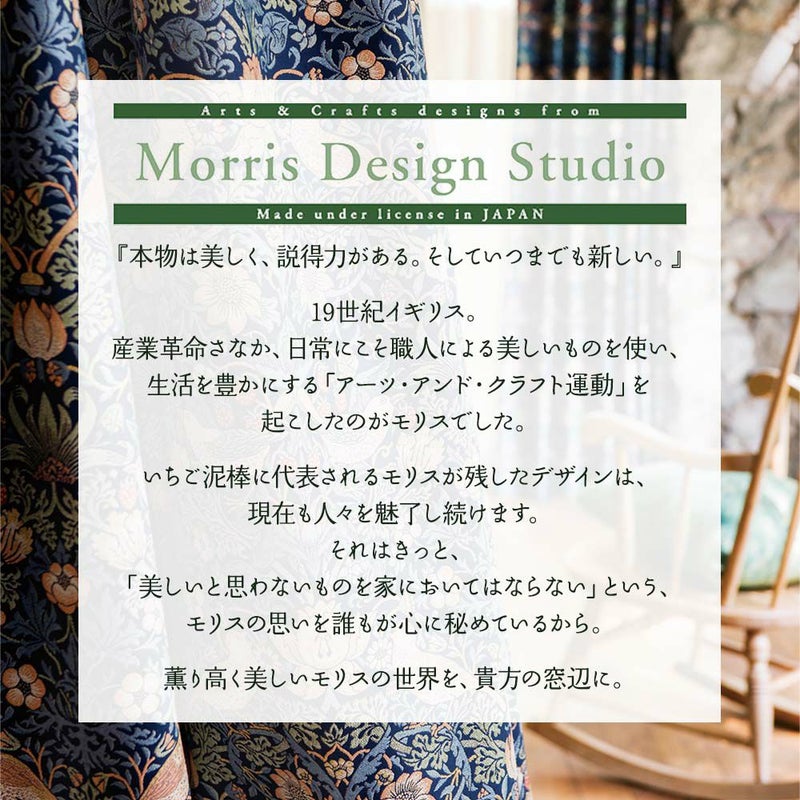 19世紀に誕生し、今も色褪せることのないモリスのデザイン。アンティーク調のインテリアとの組み合わせはもちろん、現代の落ち着いた色の家具とも相性ピッタリ。優雅な英国調の雰囲気に仕上がります。