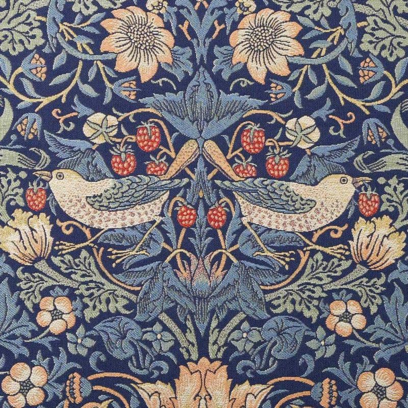 「いちご泥棒」のデザインは、モリスのケルムスコットの別荘で育てていた苺を、ツグミに食べられてしまったことから生まれました。モリスはその時、大切に育てた苺を食べられてしまったのは悲しいけれど、その姿に愛おしさを感じたのではないでしょうか?作品の名前に「泥棒」と名付けたことからも、モリスのユーモアのセンスが感じられますね。