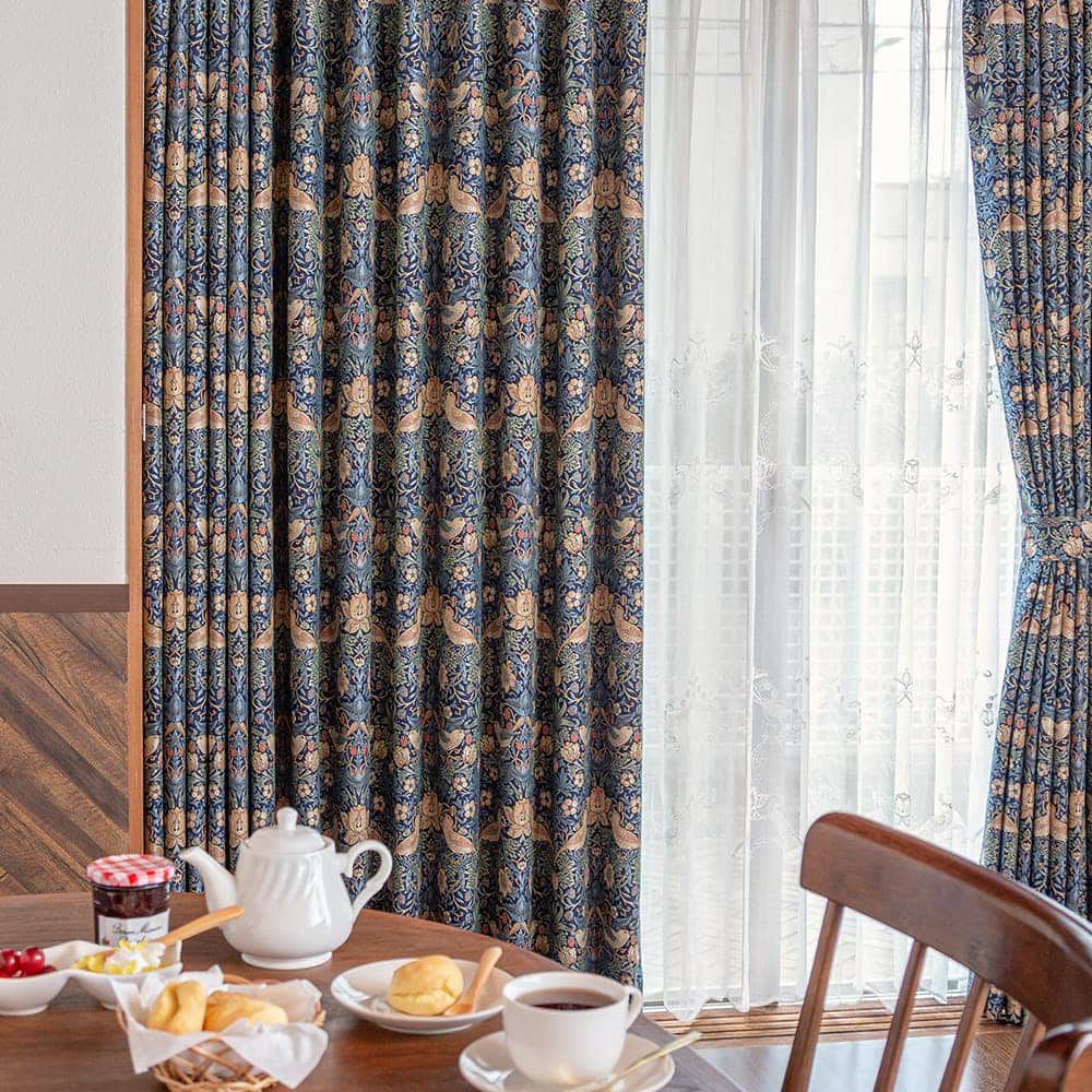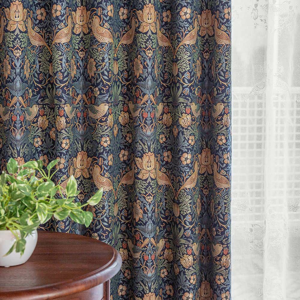 ウィリアム・モリスの代表作「いちご泥棒」をジャガードカーテンに