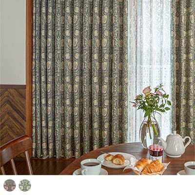 モリスが愛したケルムスコットに思いを馳せて、壁紙と同じデザインのカーテンを楽しむ。カーテンを眺めながら、イギリスへ思いを馳せる素敵なひと時を貴方に。