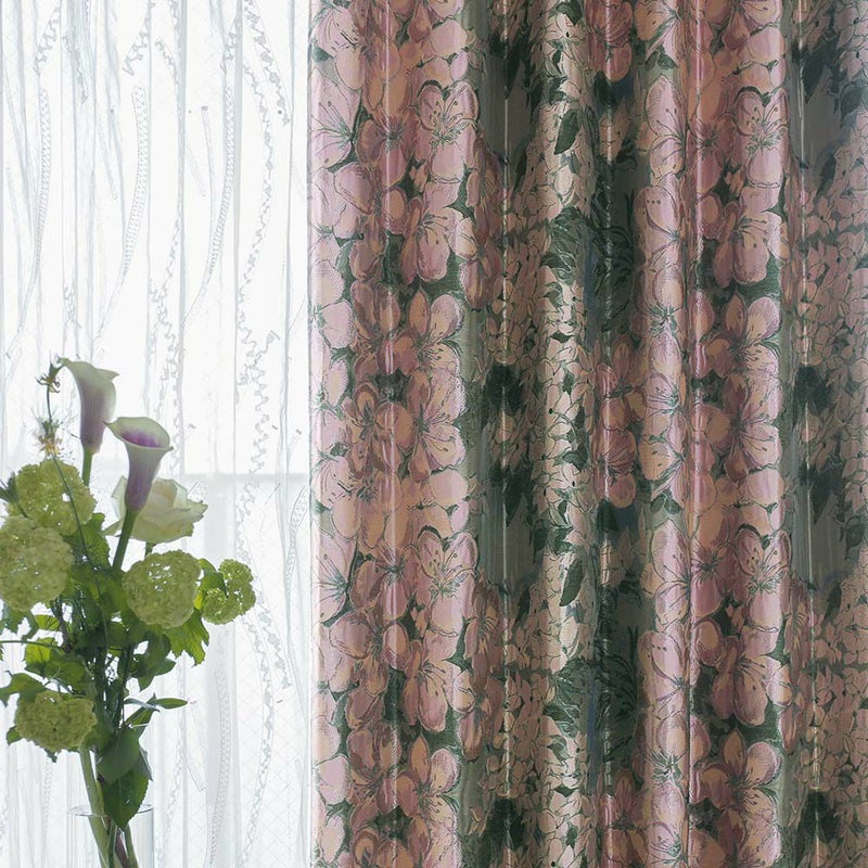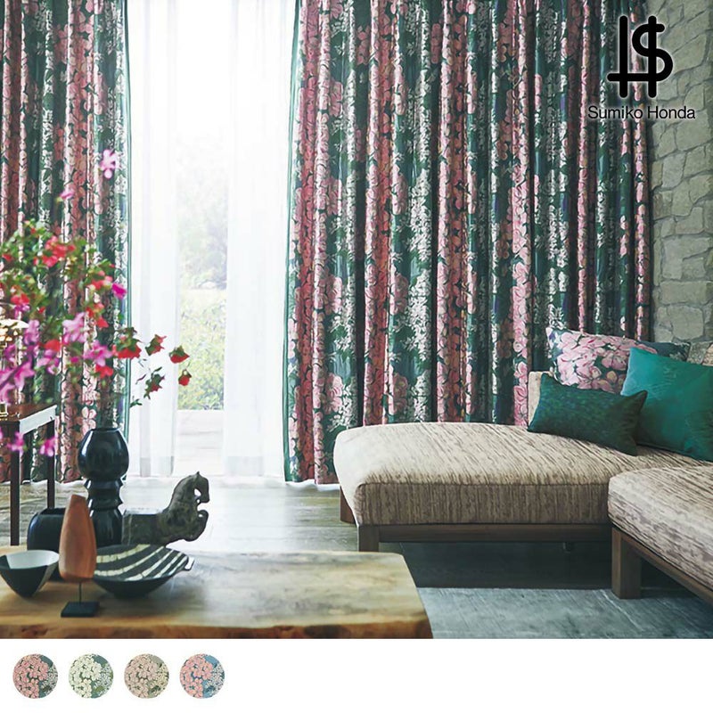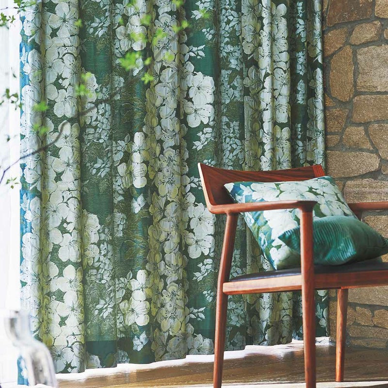 ツツジとヤマボウシを瑞々しく表現した、珠玉の国産ジャガードカーテンをぜひご堪能ください。 -