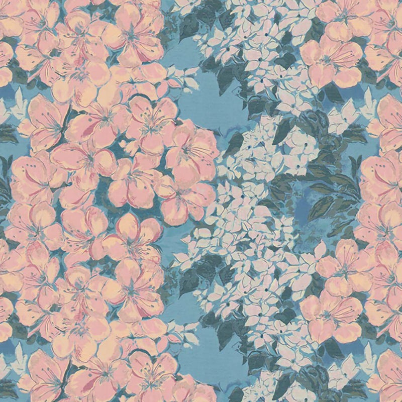 夏の訪れとともに咲き誇るツツジとヤマボウシ。美しい花々をストライプ状に配置し、豊かで奥行きのあるテキスタイルを作り上げました。