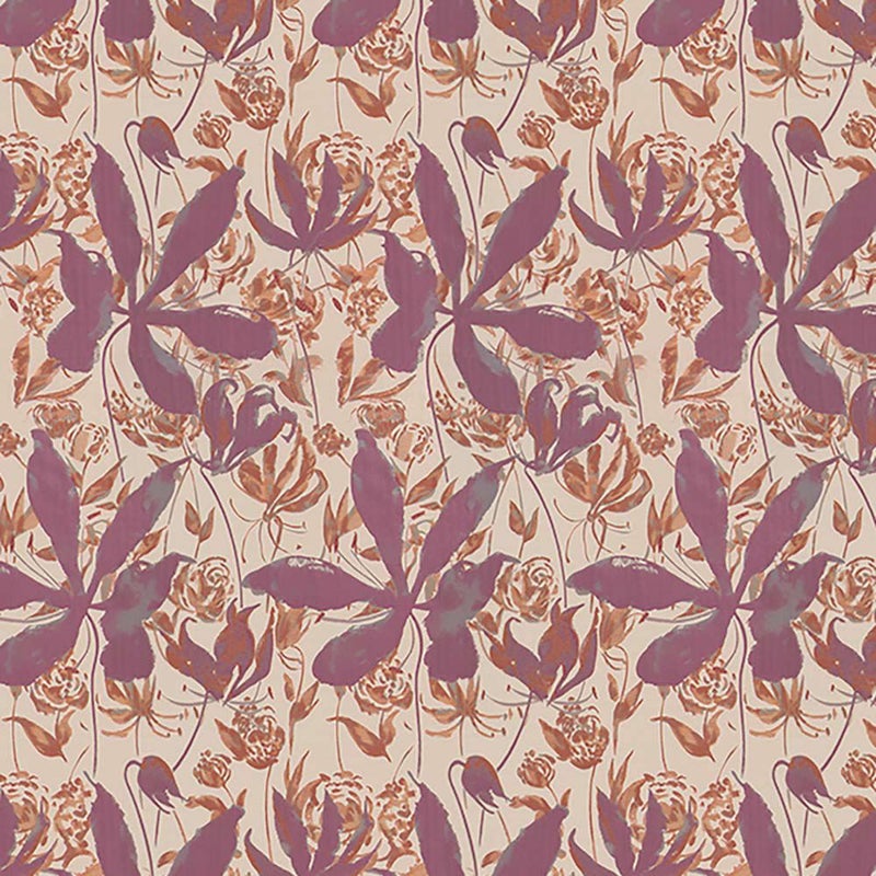 グロリオサとラナンキュラスの2種類の花をシルエットで表現した、モダンでノーブルな印象の花柄です。