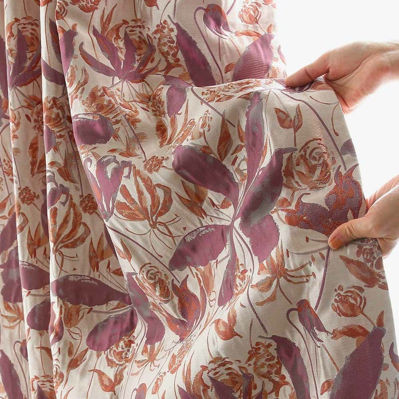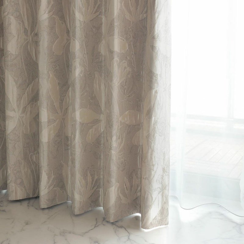 ジャガードの繊細な織りが、生地自体の柔らかさや質感を高めています。高級感と柔らかさの融合。それこそがジャガード織カーテンの深い魅力です。 リッチなハリ感、重厚感のある風合いをお楽しみください。