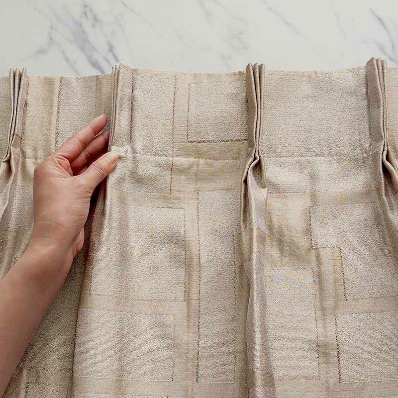 是非、生地をたっぷりと使った縫製スタイル「2倍ヒダ(3つ山)」で、豊かで高級感溢れるカーテンをお楽しみください。 -