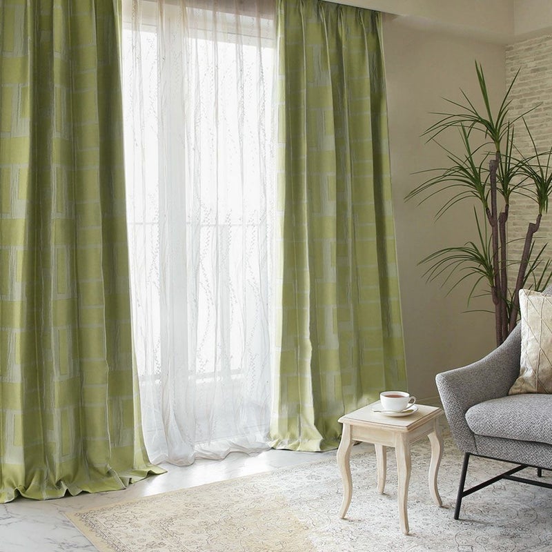 【撮影仕様】ヒダ数:2倍ヒダ(3つ山) 裏地付き、ブレイクスタイル(床から丈+15cm)カラー:ライトグリーン(ysks_0631)