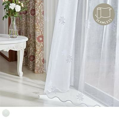 刺繍の美しさを存分に味わえるシームレスレース。大きな窓でも、生地の幅継ぎが無く、デザインの美しさを心ゆくまで楽しめます。
