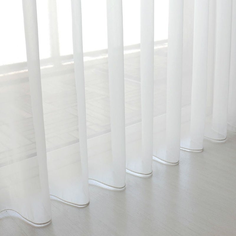 今までにない柔らかさと、サブレ感が魅力のベーシックなレースカーテンです。継ぎ目のないシームレス仕立てで、窓辺の景観をより一層美しく装います。 -