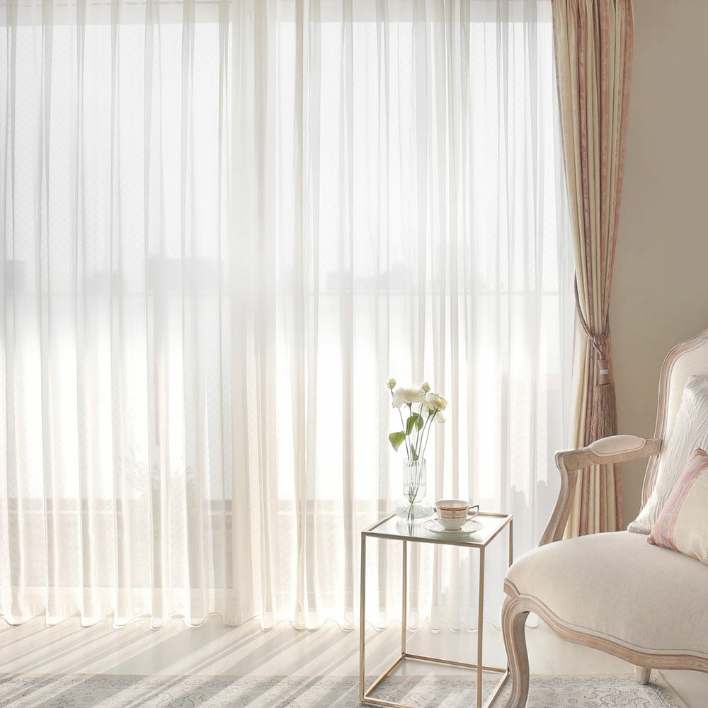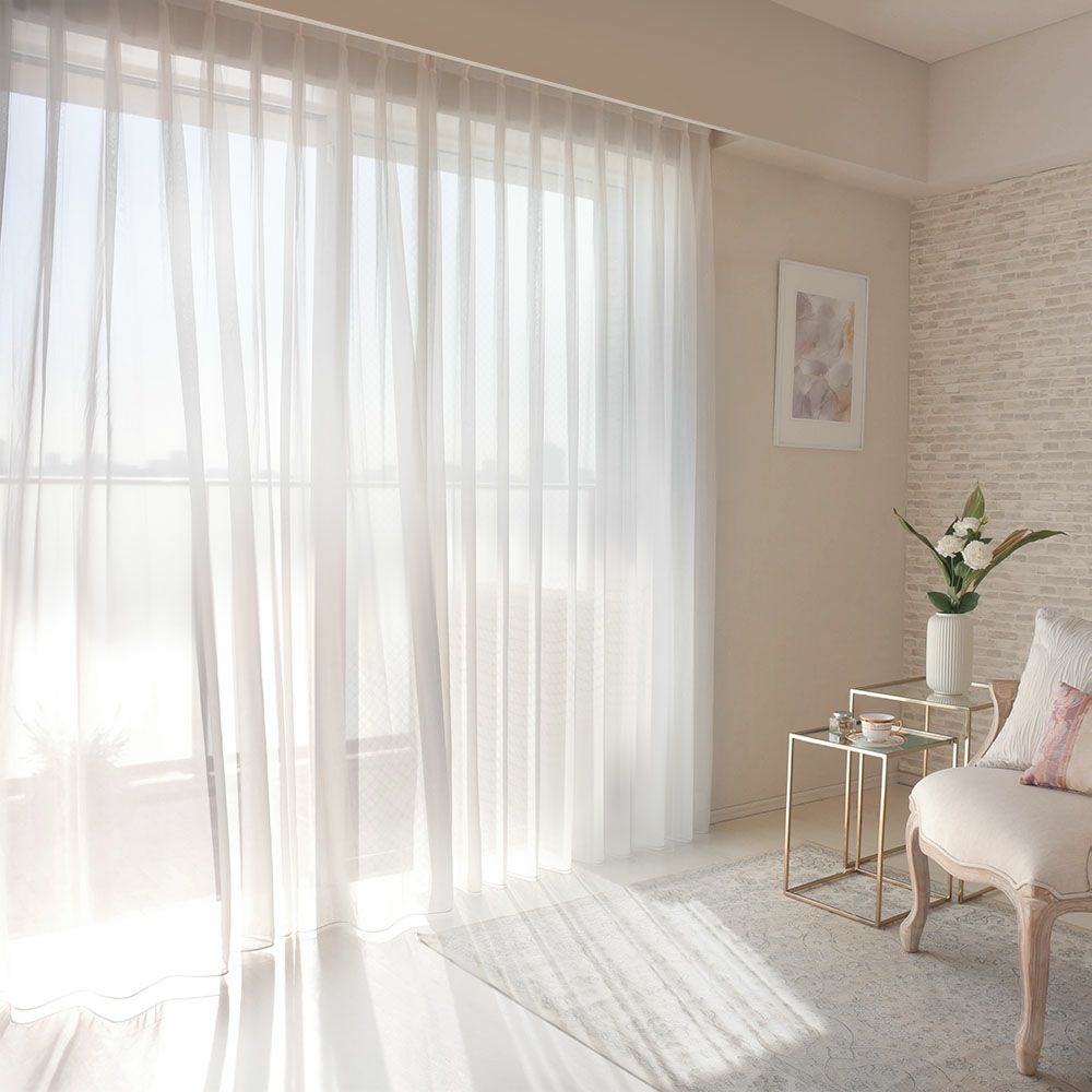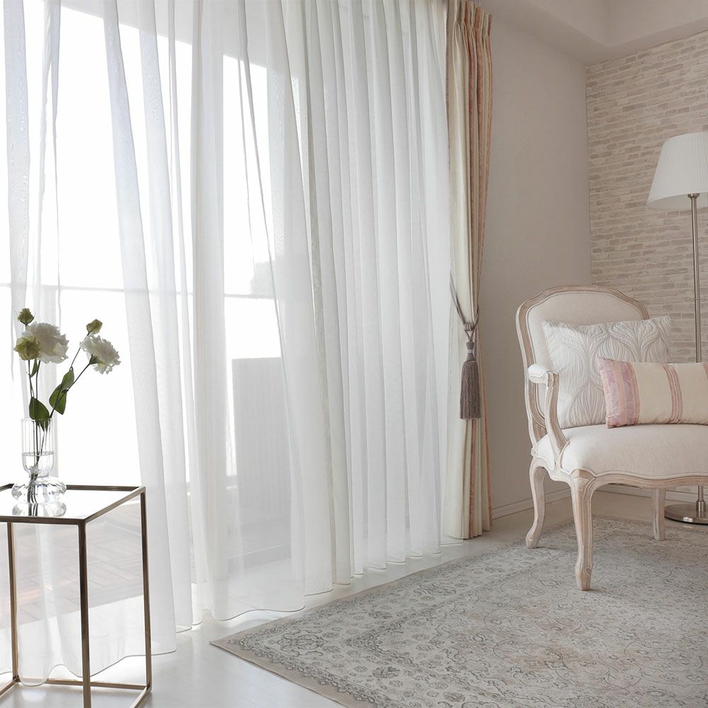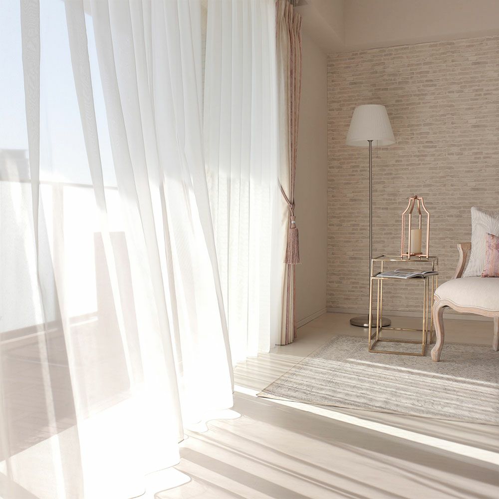 美しいドレープの落ち感が、窓辺をいっそう優雅に魅せてくれるレースカーテン。心地よいそよ風と、やわらかい陽ざしを浴びて、日中はレースカーテンで心地よくお過ごし頂けます。