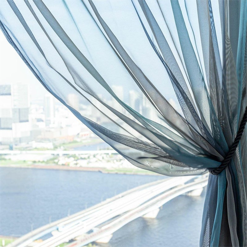ごく薄い生地にグラデーションを乗せ居ているので、とても涼やかで透明感のある窓辺をお楽しみいただけます。こころなしかお部屋の空気も、いつもより澄んでいるように感じませんか。