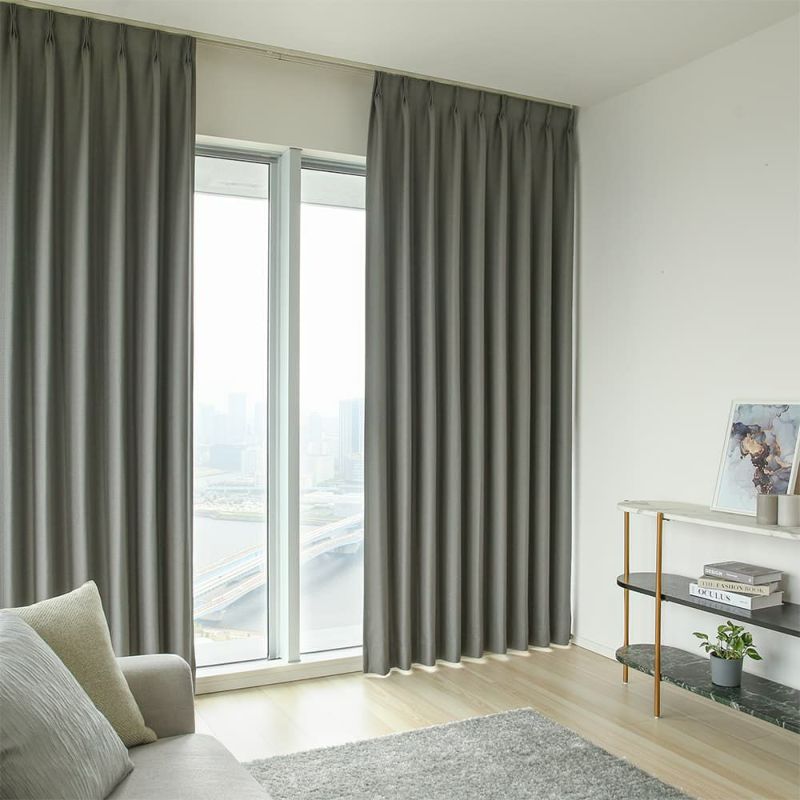 無地調で美しい光沢のあるカーテンは、憧れのホテルライクな空間にぴったり。 ひんやり艶めく金属的なカラーが、美しく整った空間をよりおしゃれに演出してくれます。