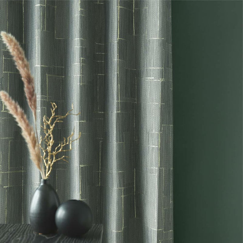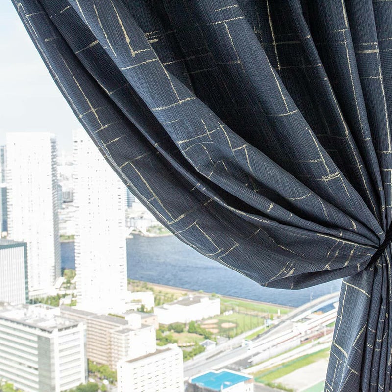 日本古来からのSDGsといえる「金継ぎ」からインスピレーションを受け、デザインされたカーテン。遮光裏地付きでお仕立てするので、遮熱保温性にも優れた逸品。美しいゴールドのラインが、空間をモダンに演出します。 -